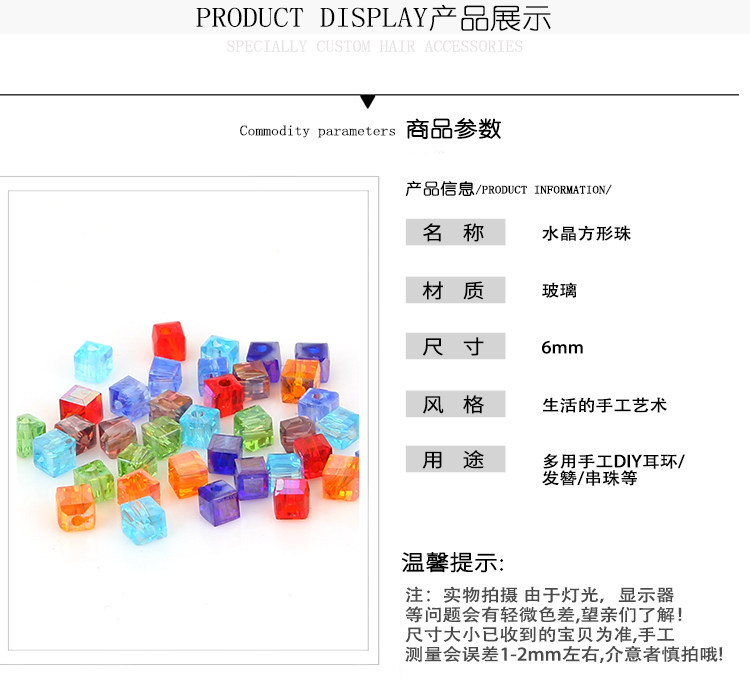 Стеклянные квадратные бусины ручной работы, серьги, китайская шпилька, браслет, аксессуар, аксессуары, 6мм, DIY