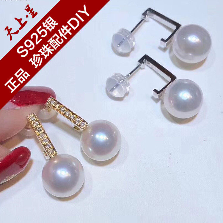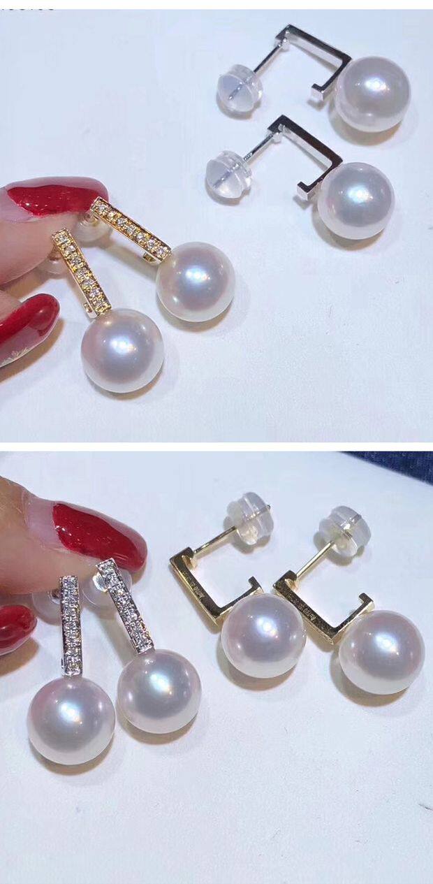 Аксессуары, S925, изысканные серьги из жемчуга, DIY, серебро 925 пробы, золото 750 пробы, 8-10мм
