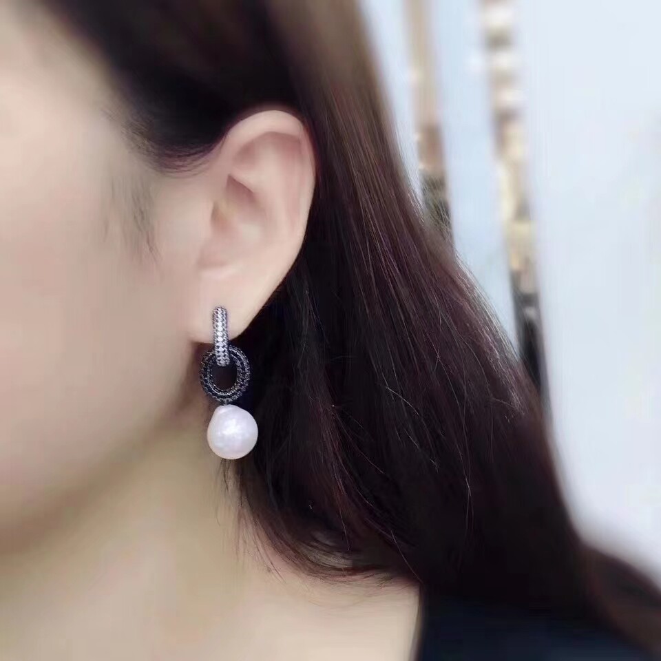 - Белое золото (модель E112) (с черными бусинами-ракушками)
