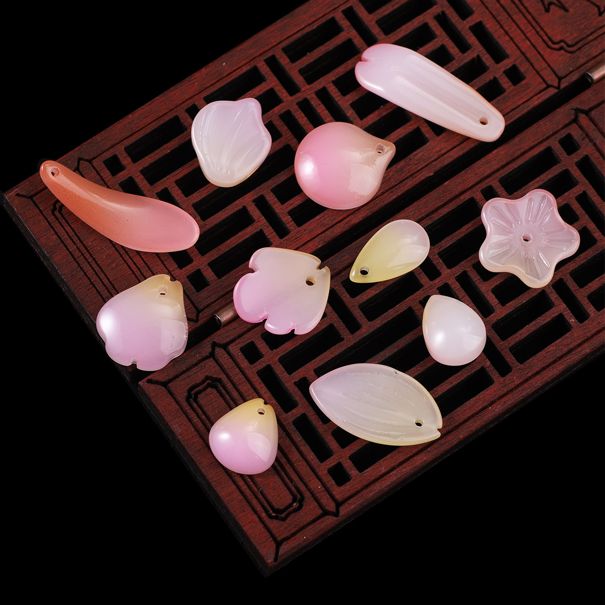 Розовая стеклянная подвеска из белого нефрита в форме капли, китайская шпилька ручной работы, аксессуары, 10 шт, DIY