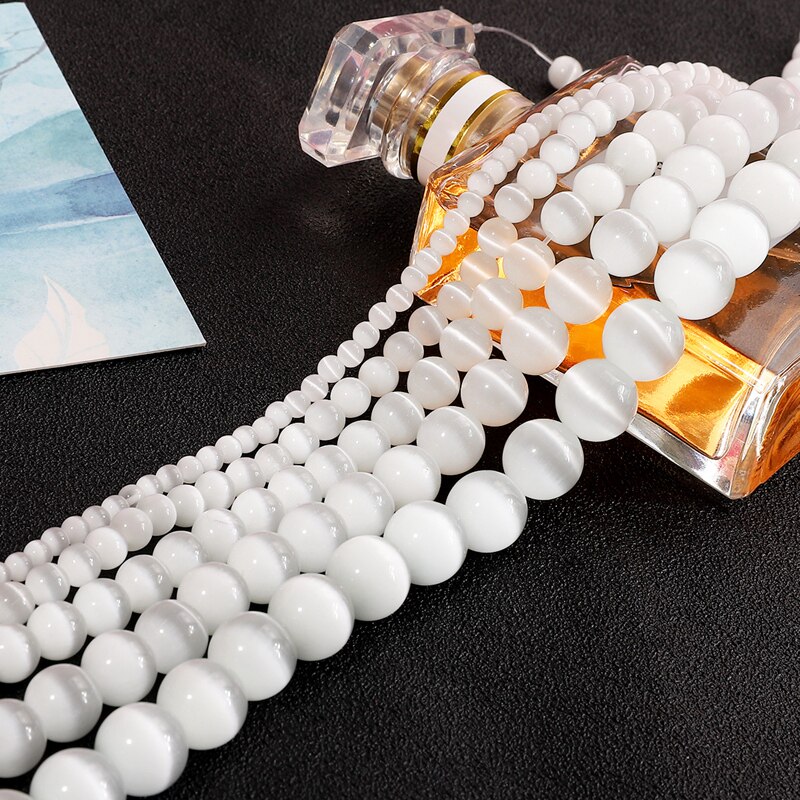 Белые бусины ручной работы, браслет из бисера, ожерелье, китайская шпилька, серьги, аксессуар, аксессуары, 4-12мм, кошачий глаз, DIY