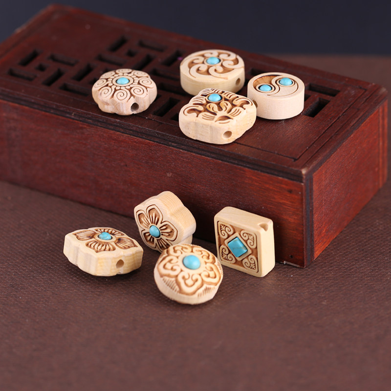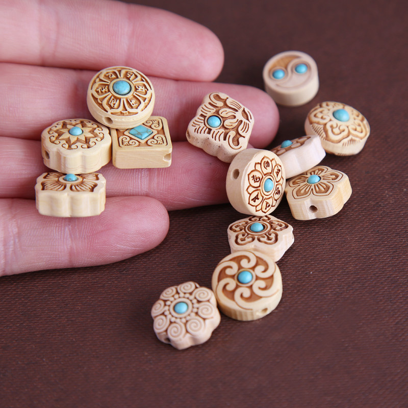 Бирюзовая инкрустация камня, резные бусины, аксессуар, брелок из грецкого ореха, четки из круглых бусин, аксессуары