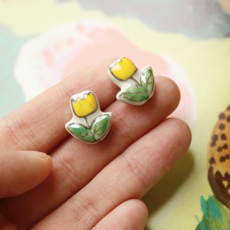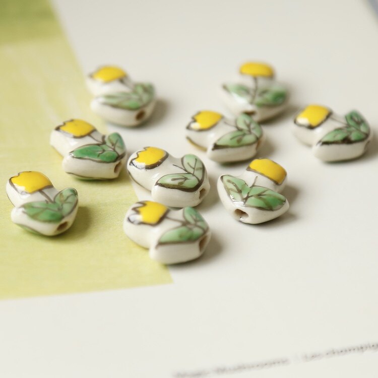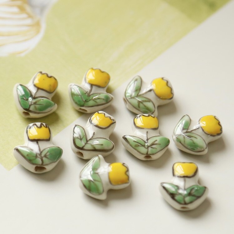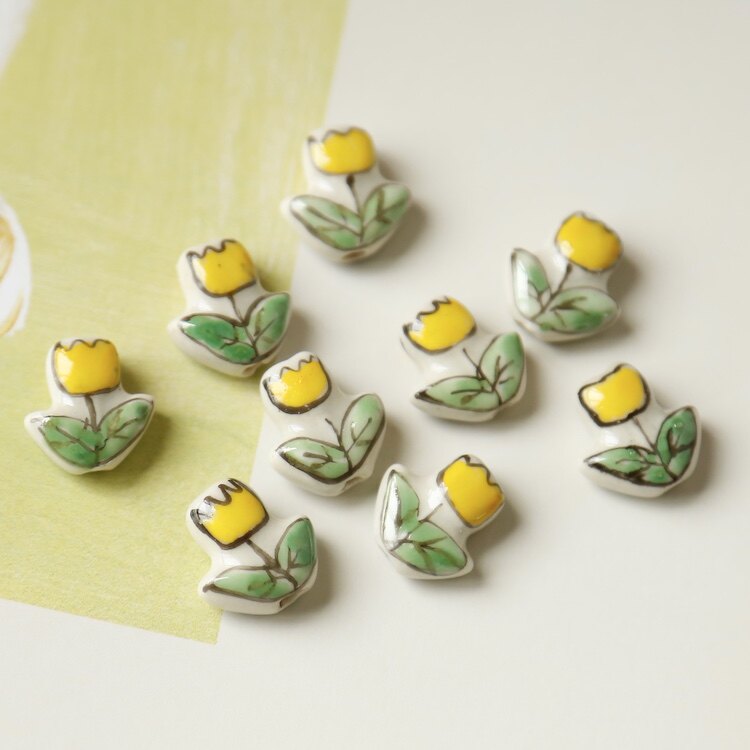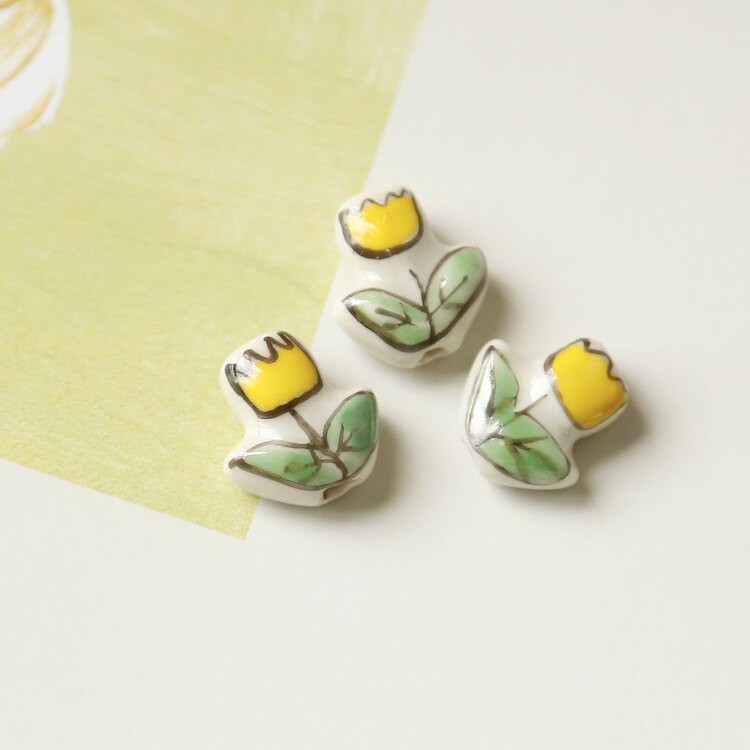 Керамические бусины светло-желтого цвета с цветком