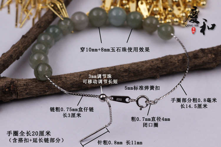 Эластичный браслет, универсальные бусины из нефрита, серебро 925 пробы, золото 750 пробы