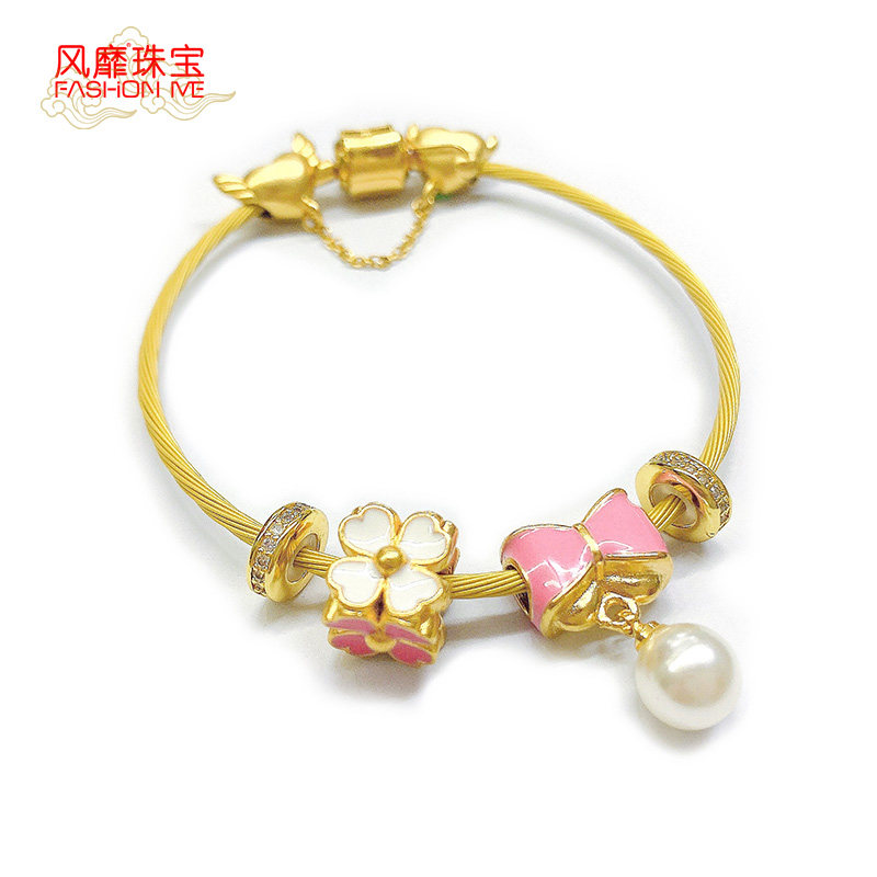 Браслет с одной бусиной с бантиком, эмаль, аксессуар, ювелирный шарм, 3D, DIY