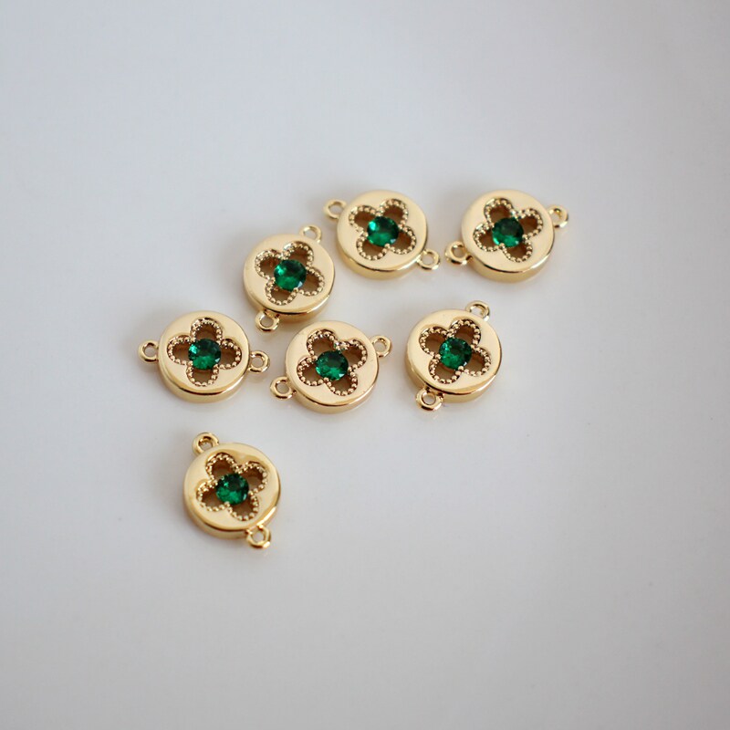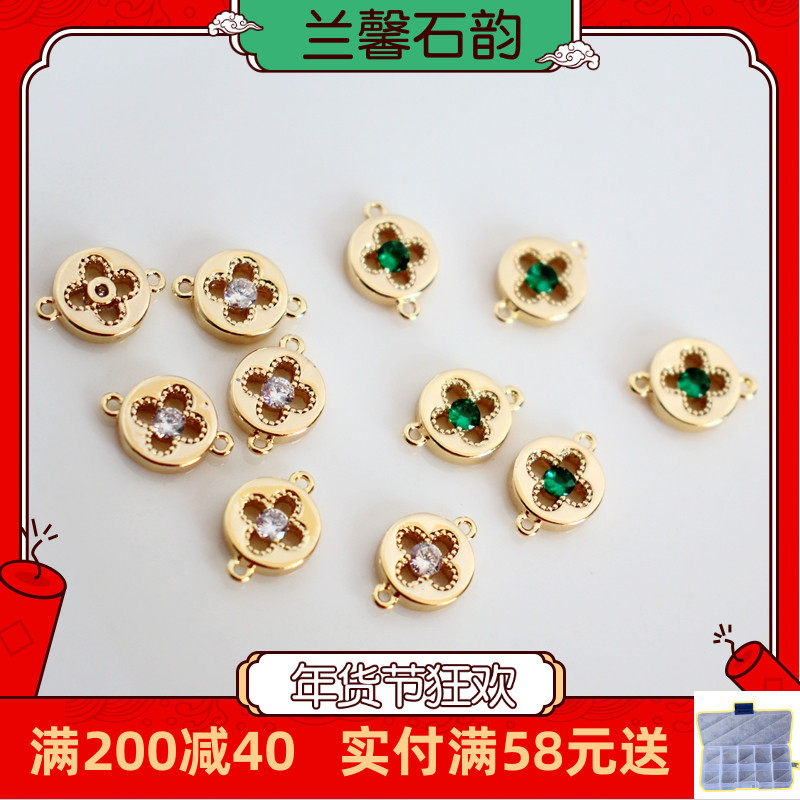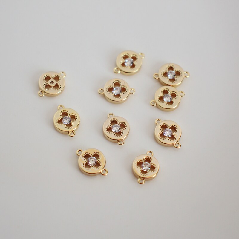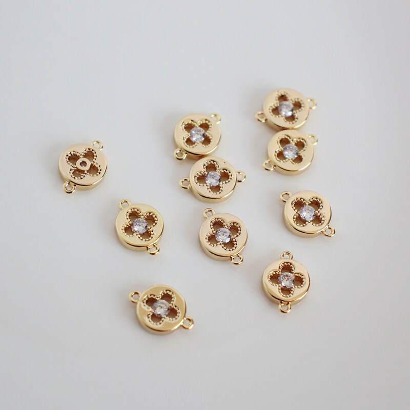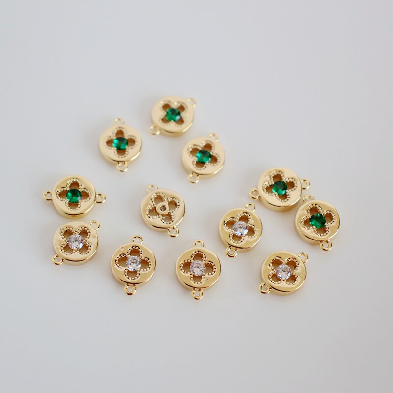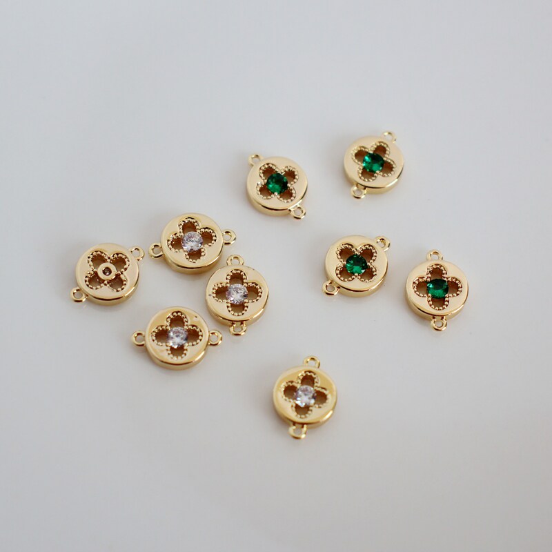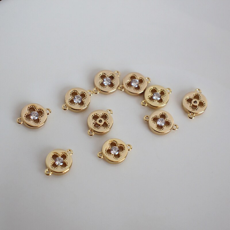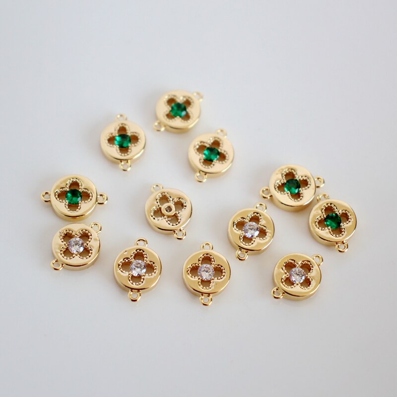 Аксессуар с цирконом, аксессуары, 14 карат, золотой цвет, четырехлистный клевер, 8мм, DIY