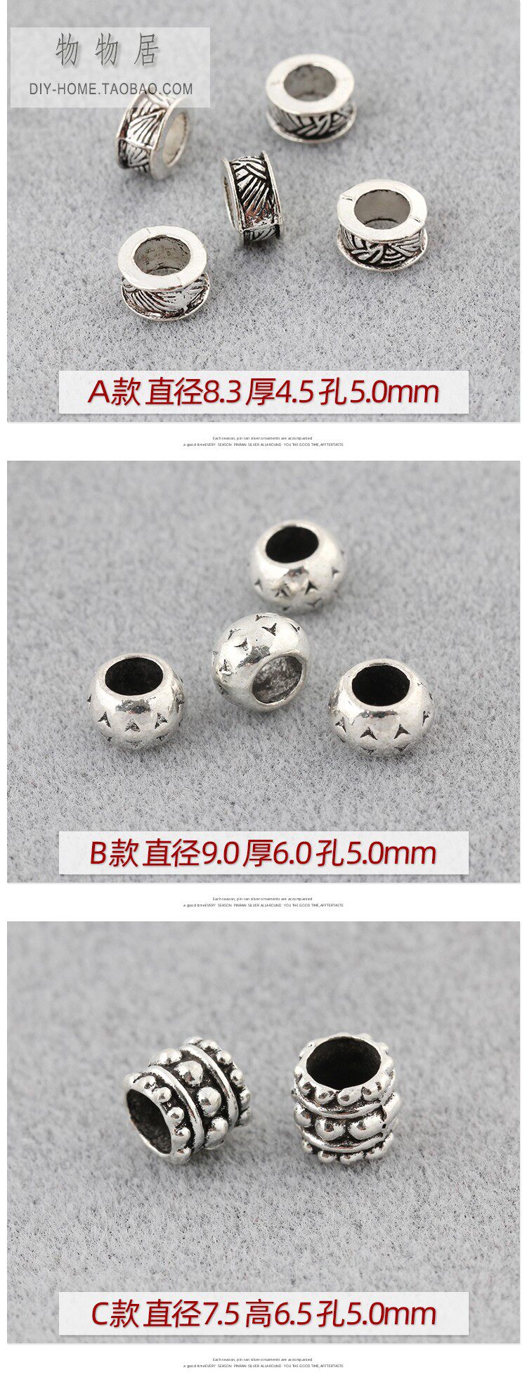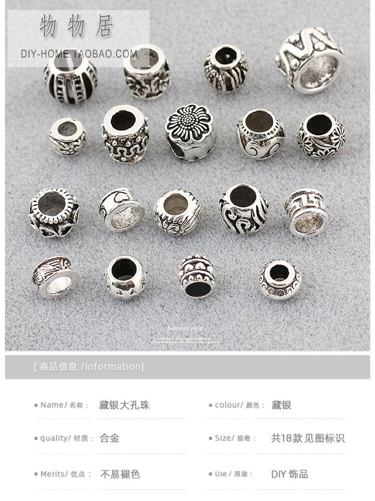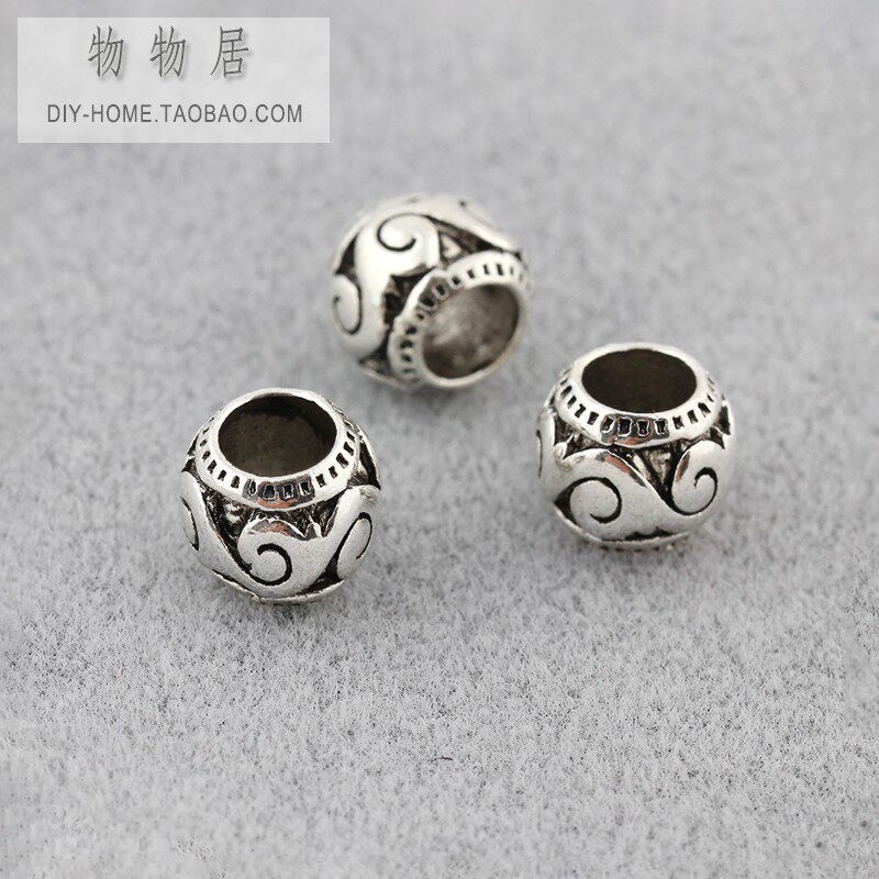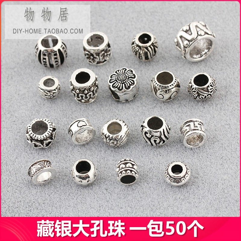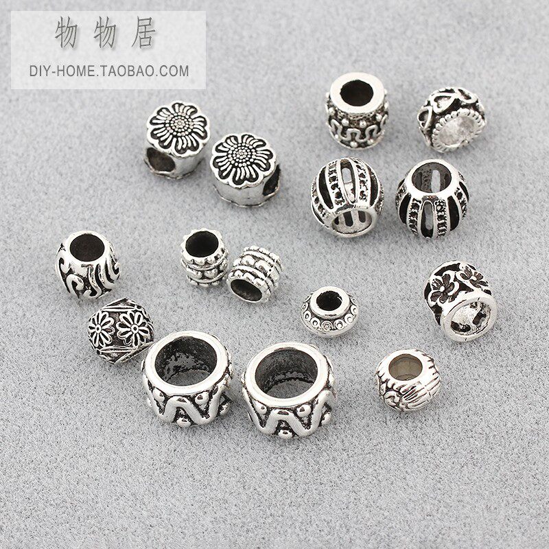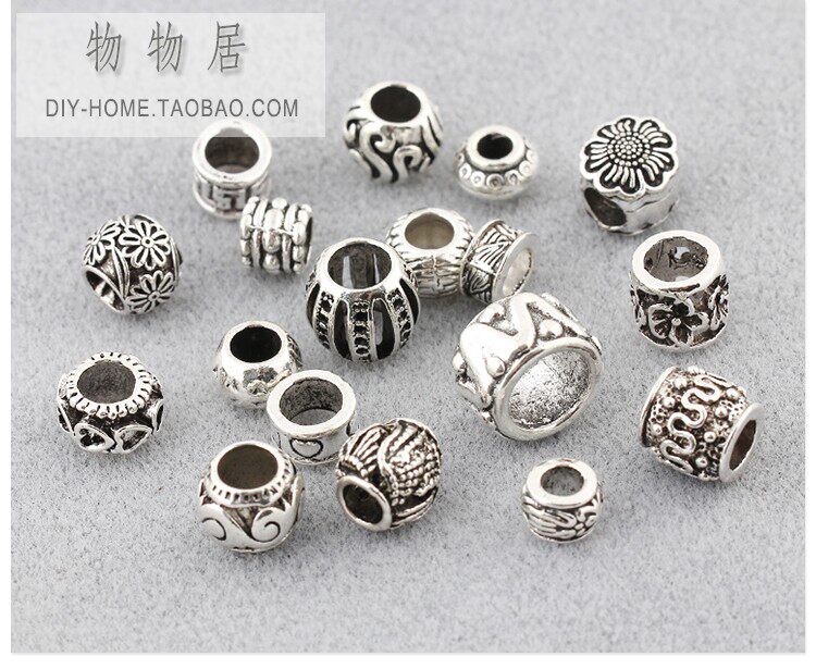 Серия бусин из тибетского серебряного сплава с большими отверстиями