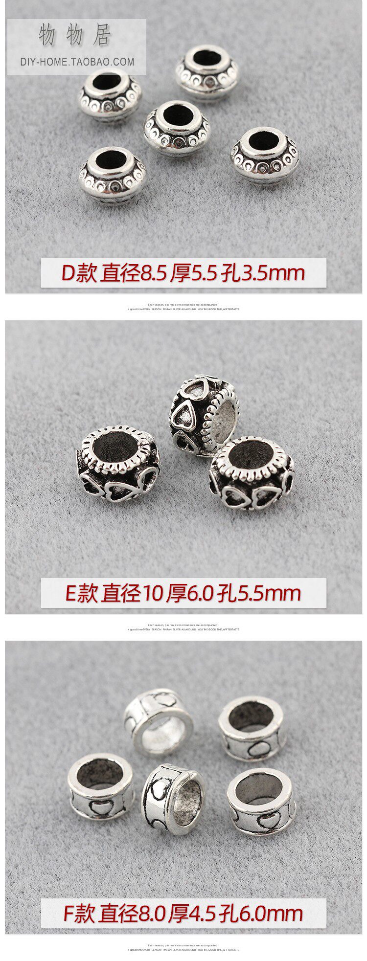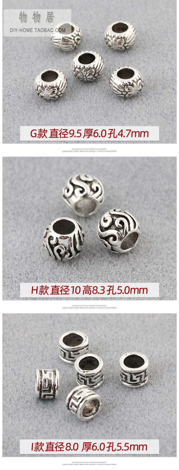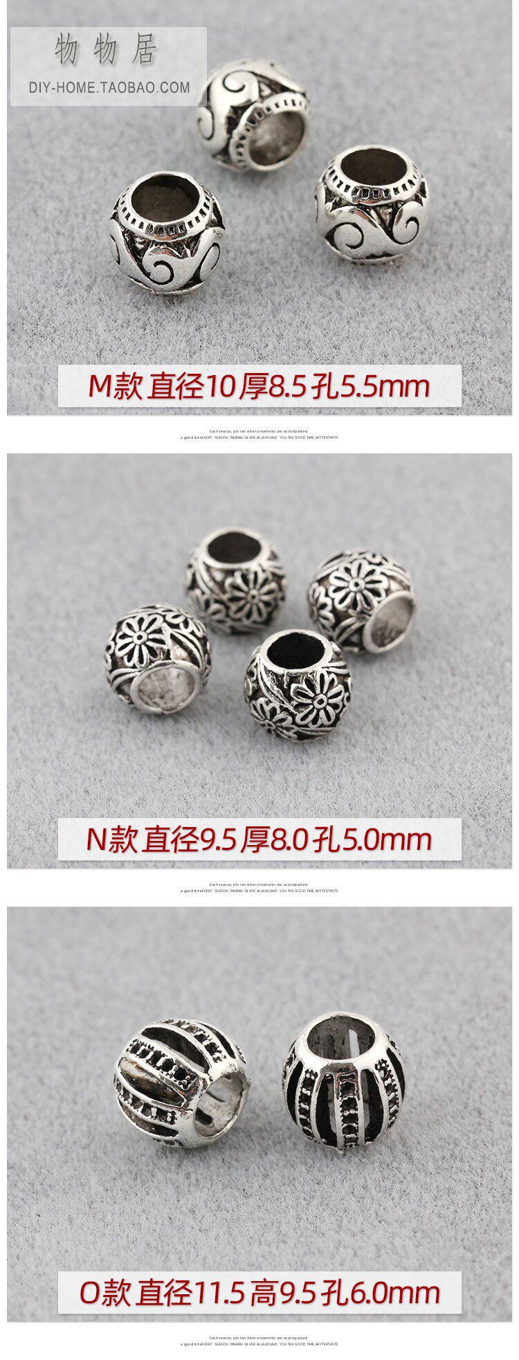 Серия бусин из тибетского серебряного сплава с большими отверстиями