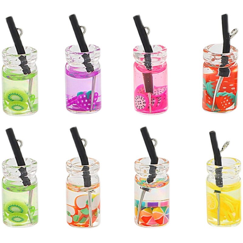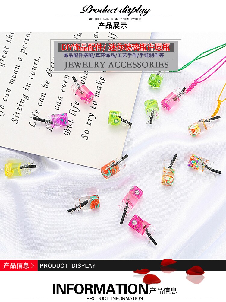 Маленькая прозрачная клубника, бутылка, подвеска ручной работы, серьги, плетеный брелок, DIY