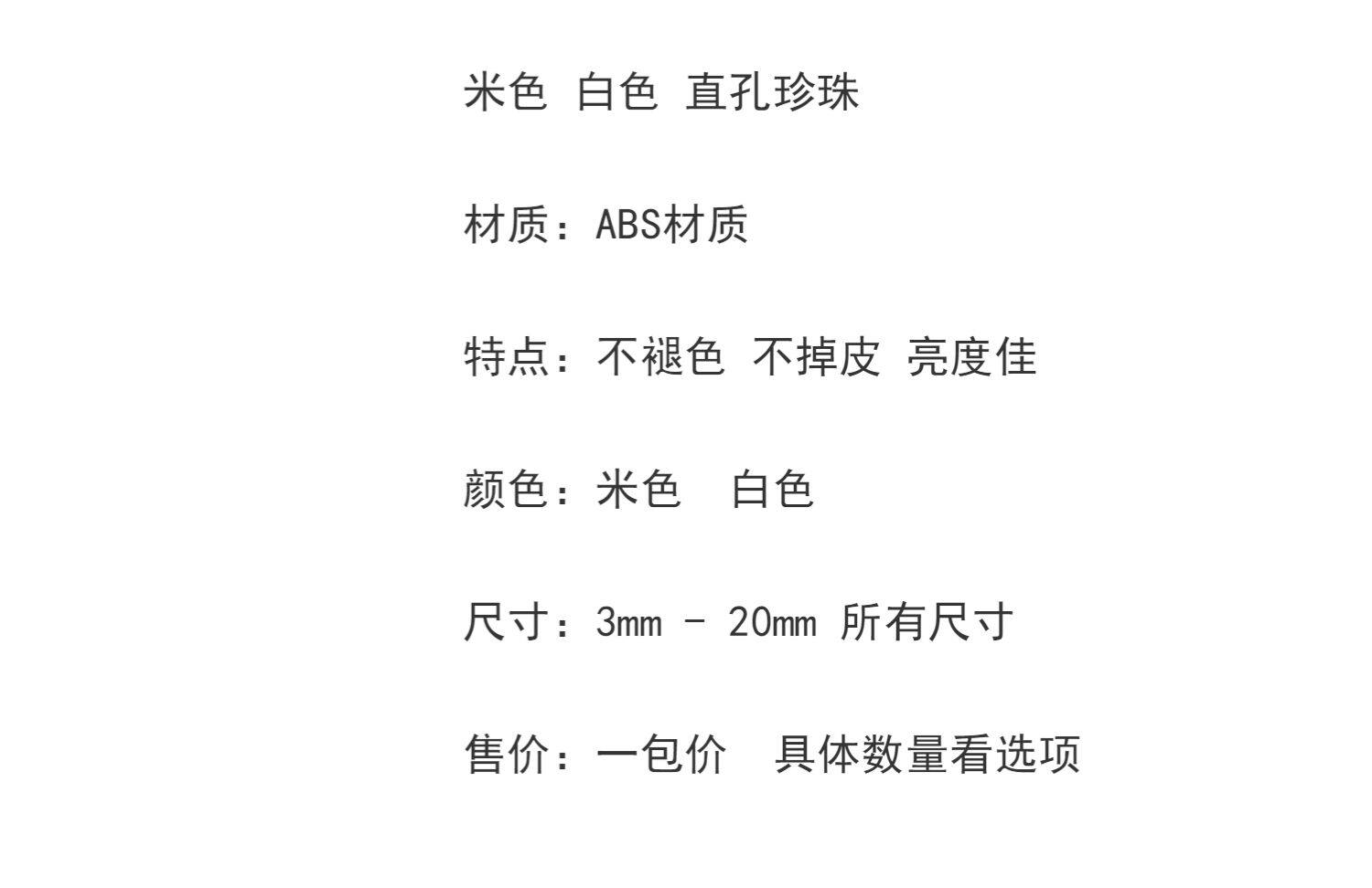 | Цвет: | Жемчуг бежевый 3 мм [500 шт.], Жемчуг бежевый 4 мм [500 шт.], Бежевый жемчуг 5 мм [200 шт.], Бежевый жемчуг 6 мм [200 шт.], Жемчуг бежевый 8 мм [100 шт.], Бежевый жемчуг 10 мм [100 шт.], Бежевый жемчуг 12 мм [100 шт.], Жемчуг бежевый 14мм [50 шт], Жемчуг бежевый 16мм [50 шт], Жемчуг бежевый 18мм [50 шт], Жемчуг бежевый 20мм [50 шт], Белый жемчуг 3 мм [500 шт.], Белый жемчуг 4 мм [500 шт.], Белый жемчуг 5 мм [200 шт.], Белый жемчуг 6 мм [200 шт.], Белый жемчуг 8 мм [100 шт.], Белый жемчуг 10 мм [100 шт.], Белый жемчуг 12 мм [100 шт.], Белый жемчуг 14 мм [50 шт.], Белый жемчуг 16 мм [50 шт.], Белый жемчуг 18 мм [50 шт.], Белый жемчуг 20 мм [50 шт.] |