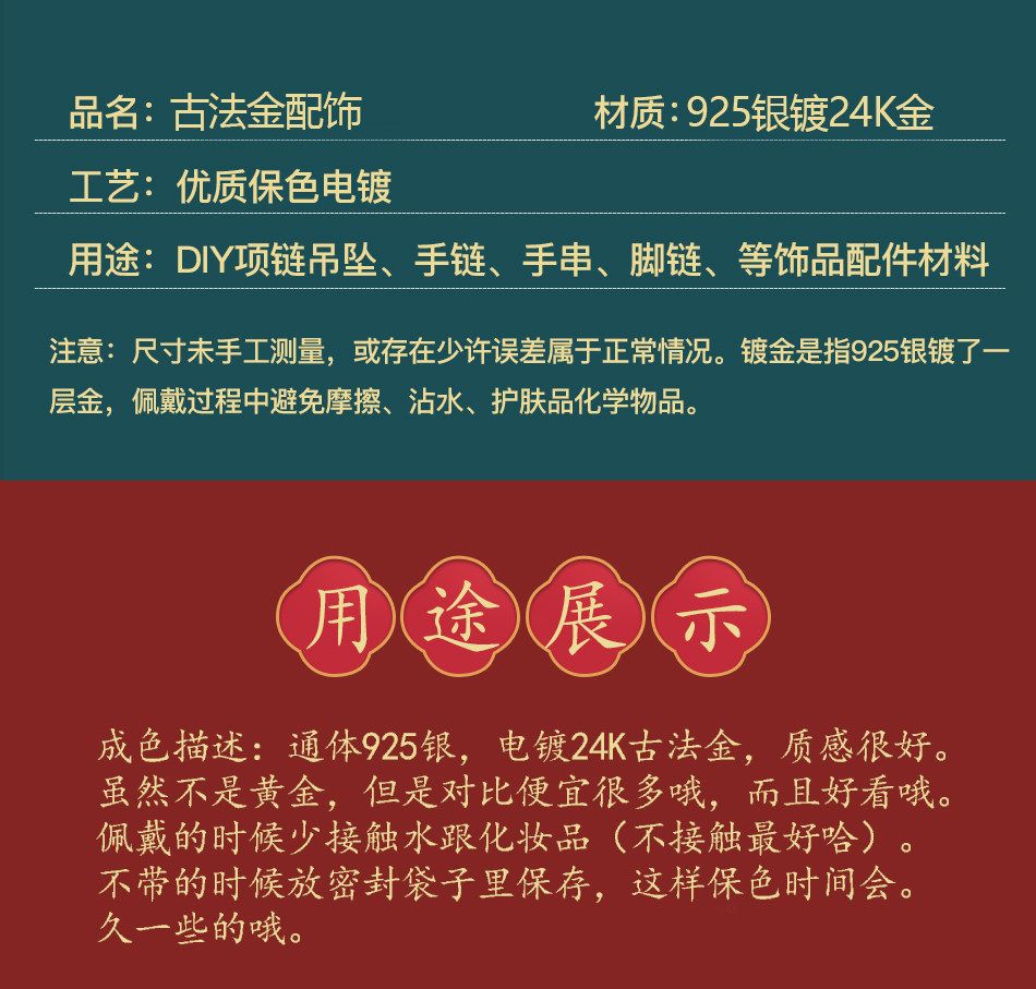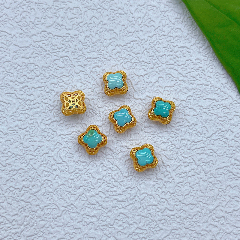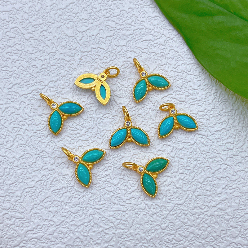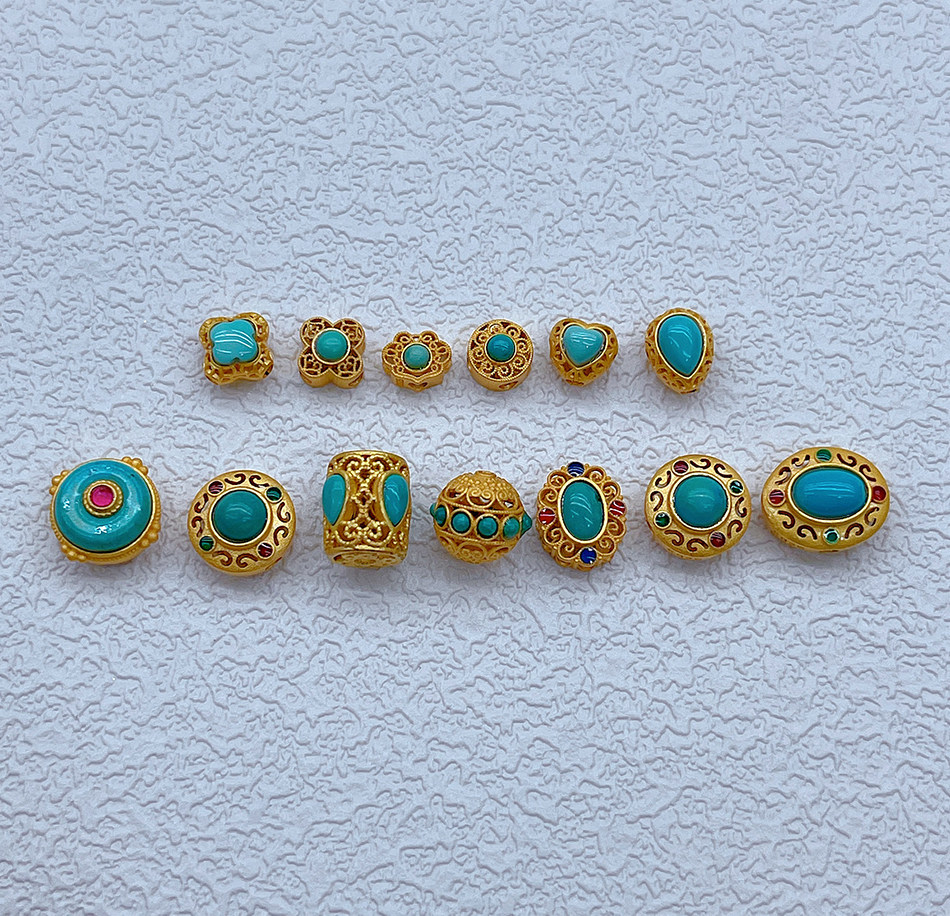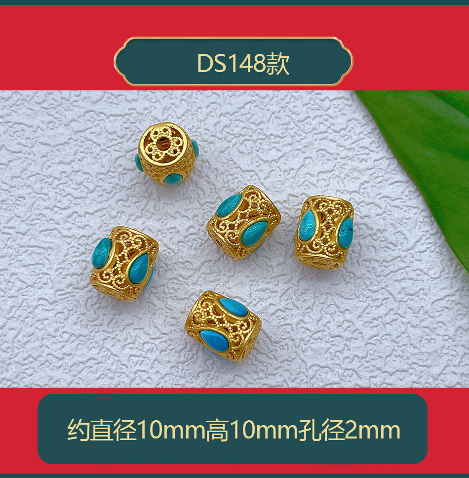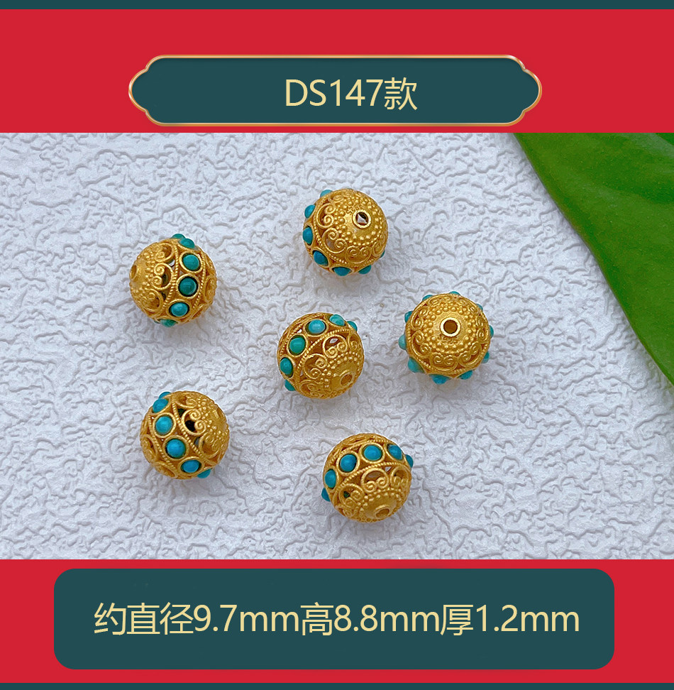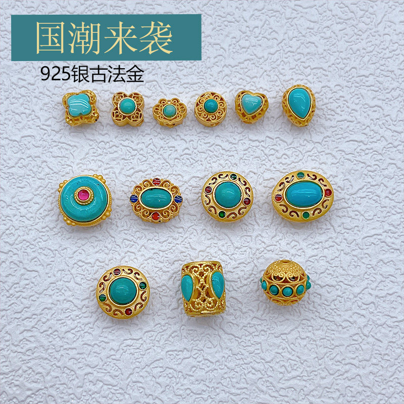 Старинное французское серебро 925 пробы, позолоченные аксессуары из натуральной бирюзы, желанные полые шарики, бусины, плетеный браслет из веревки своими руками, ожерелье