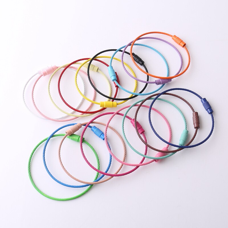 Радужная стальная проволка, шелковые нитки, брелок для ключей с застежкой из нержавеющей стали