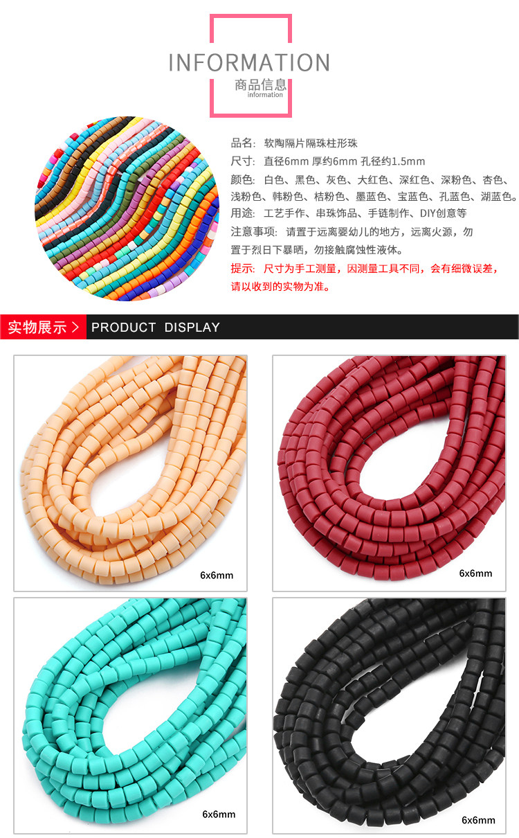 Глина, бусины, ожерелье, цепочка, браслет из бисера, аксессуар, аксессуары, 6мм, DIY