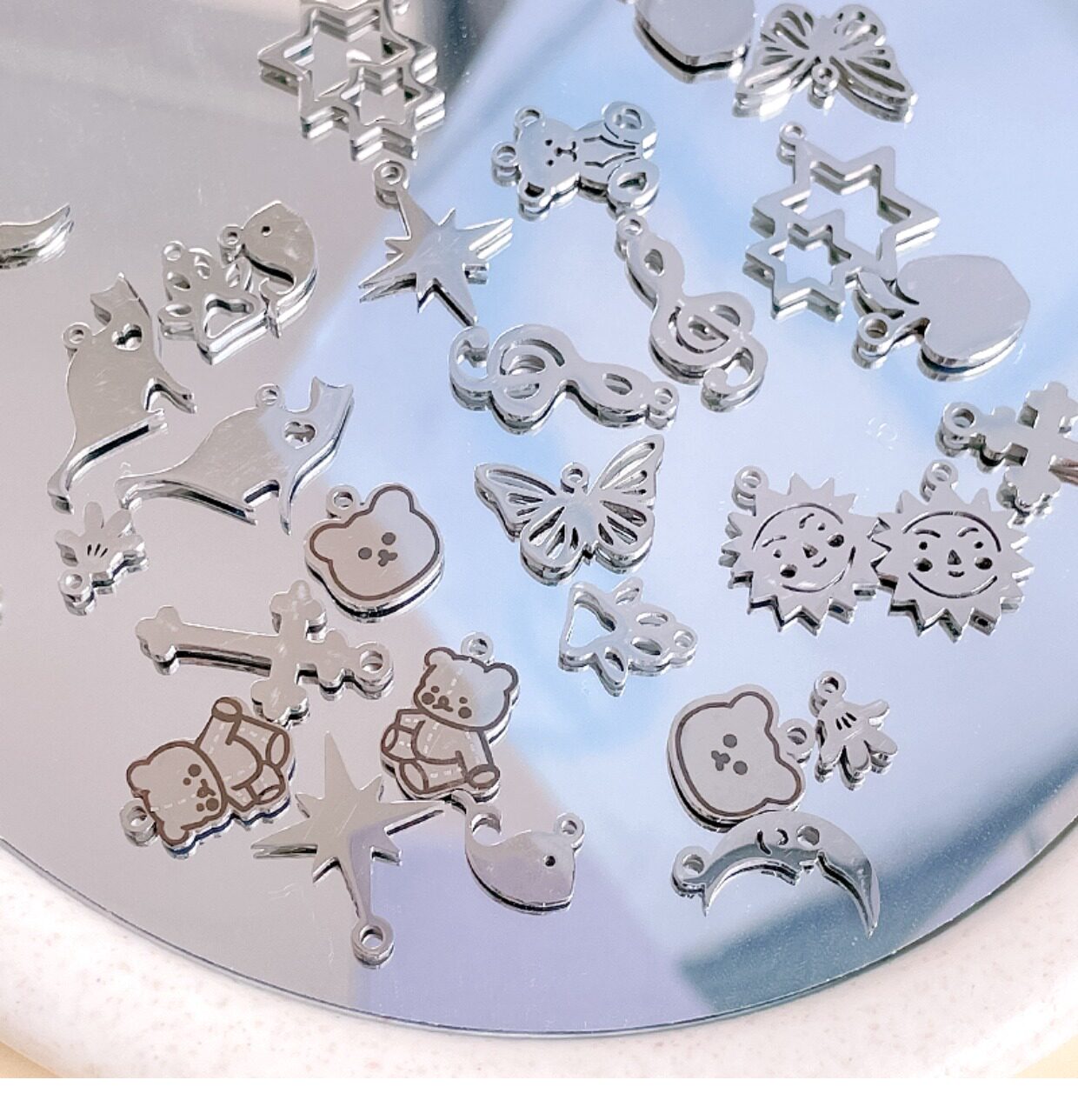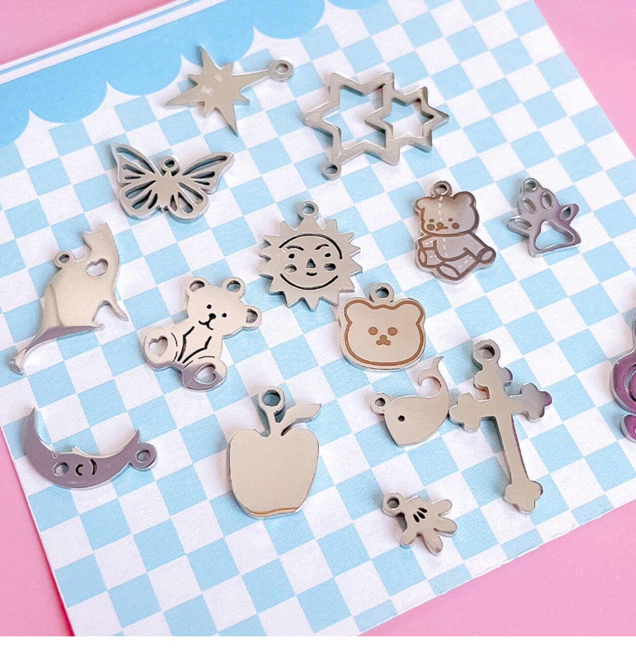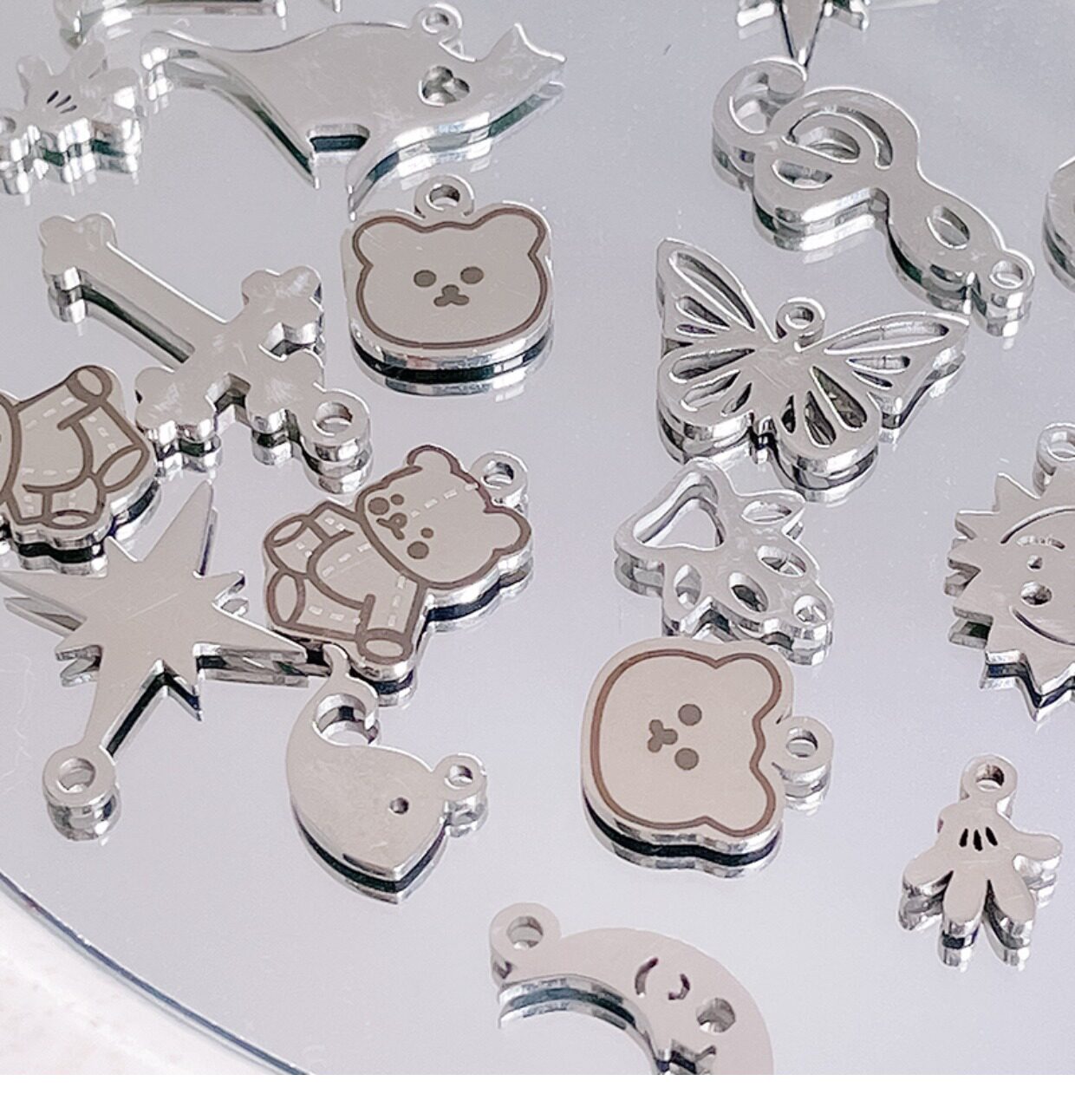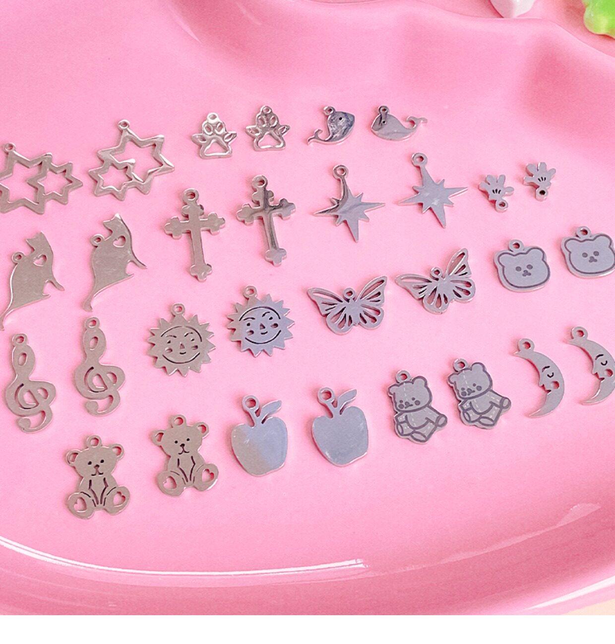 | Цвет: | Медведь 1, Медведь 2, Медведь голова, Одна бабочка, Одно из солнца на солнце, Маленький дельфин, Пересечь один, Маленькая луна, Небольшая нота, Носит маленький маяк, Мини -ладонь ладонь, Шесть ман звезды, Яблоко, Двойная звезда, Любовь кошка |
