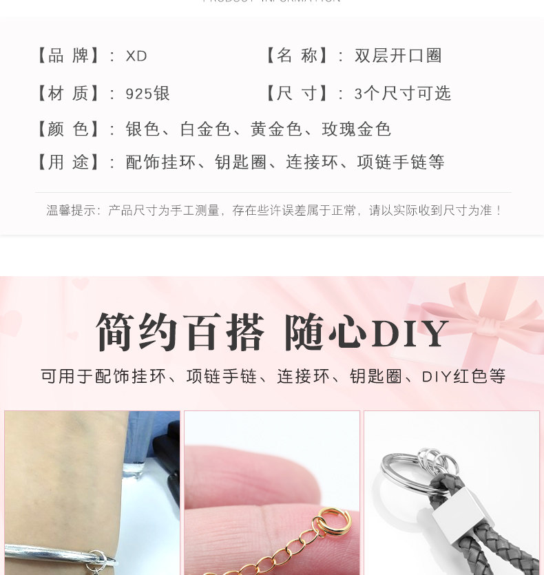 Двухслойное отверстие из серебра 925 пробы, кольцо для рта, ожерелье, соединительное кольцо, интерфейсное кольцо, маленькое кольцо из стерлингового серебра, серебряное кольцо своими руками, закрытое кольцо, пружина