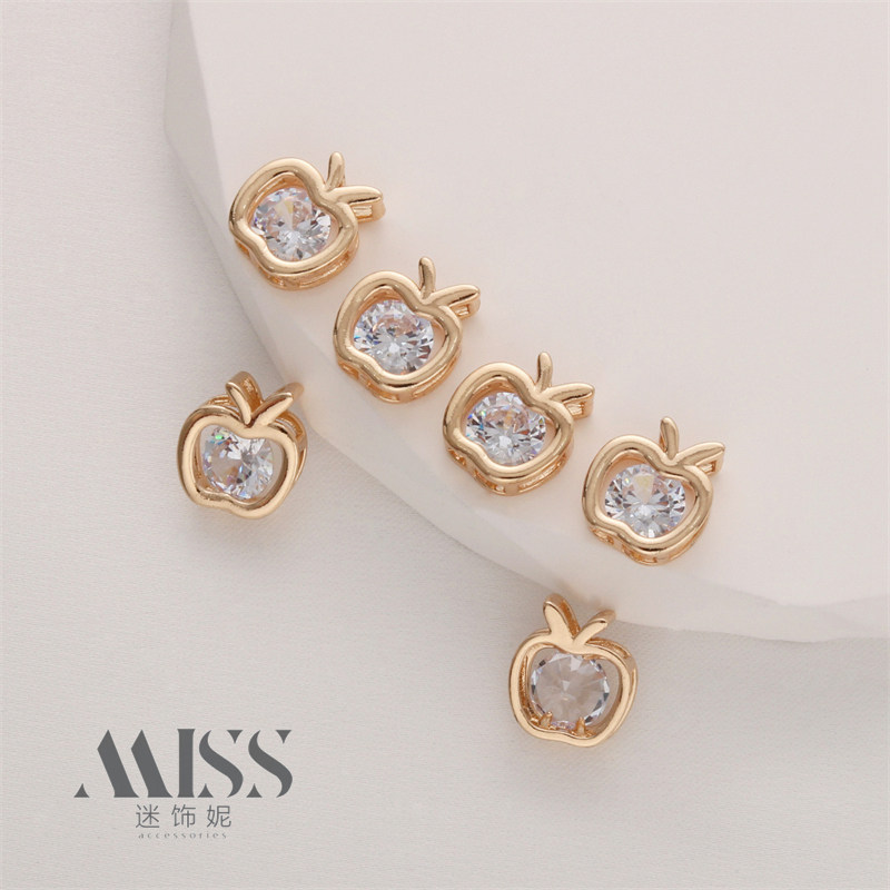 Apple, трехмерная подвеска с цирконом, аксессуар ручной работы, браслет, ожерелье, аксессуары, 14 карат, золотой цвет, DIY