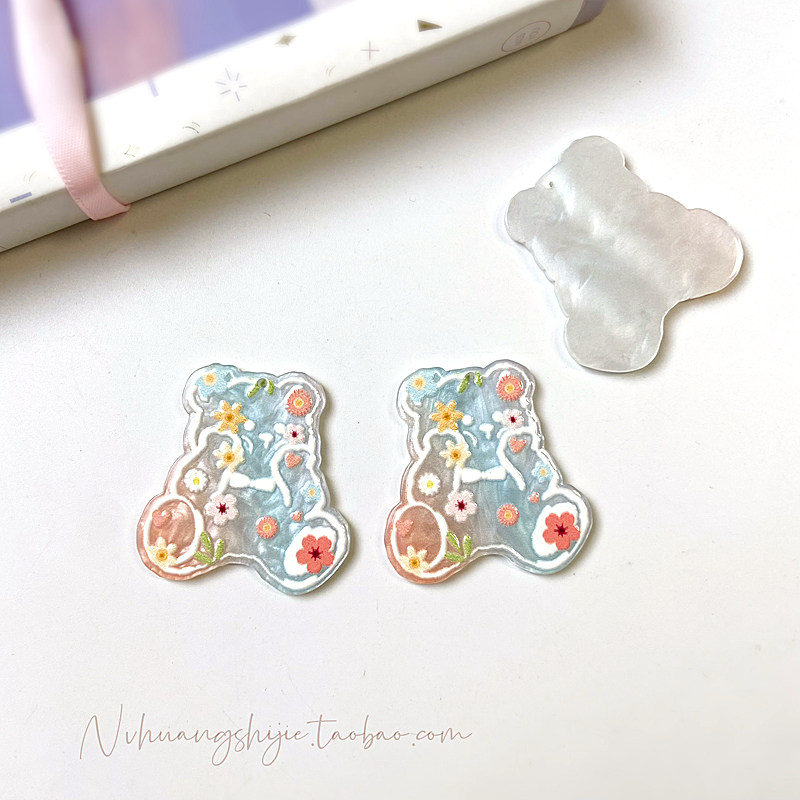 Цветочный медведь Акриловый кулон Размер: 39*37*2,5 мм