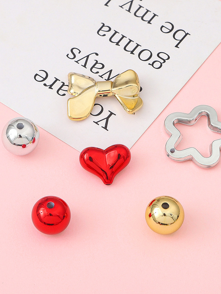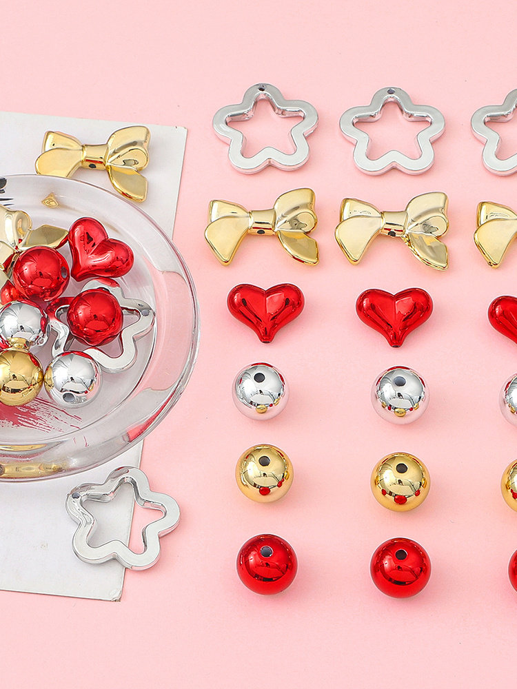 Акриловое украшение-шарик в виде сердечка, браслет из бисера с бантиком ручной работы, ожерелье и серьги, аксессуар, подвеска, 5 шт, DIY