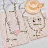 Милый кролик с бантиком, подвеска с бусинами, ожерелье и браслет с аксессуарами, 2 карат, розы, DIY