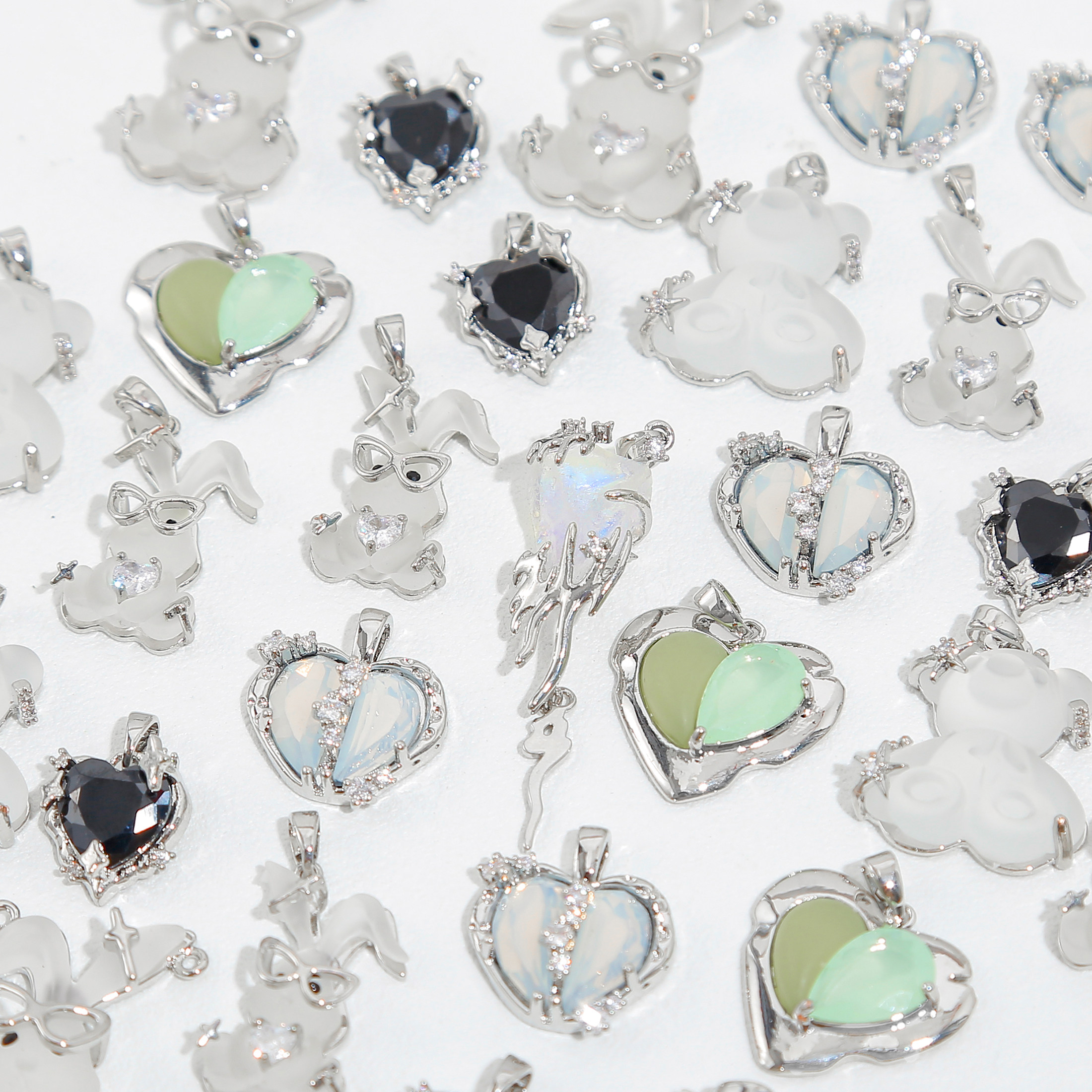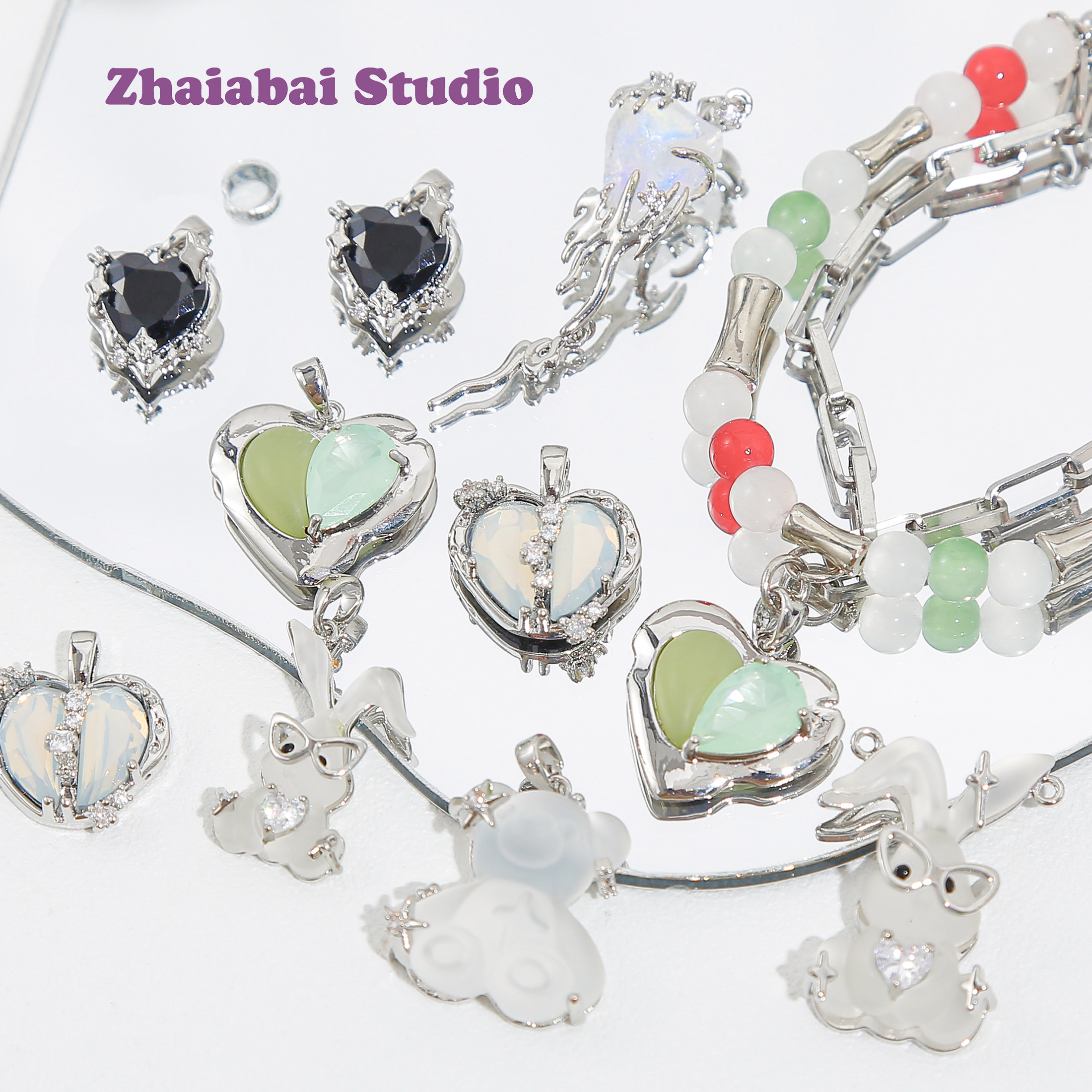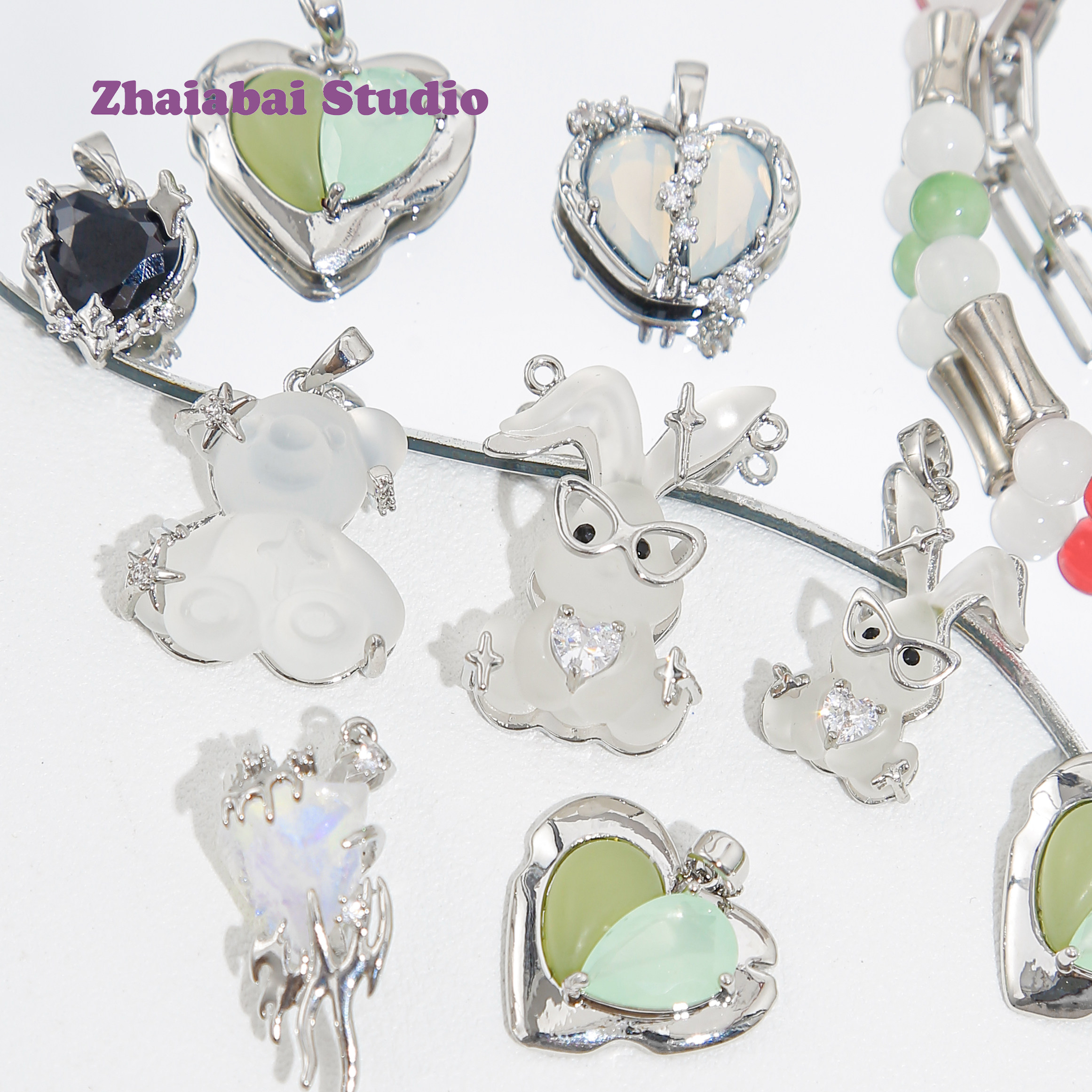Подвеска, кролик с бусинами, DIY, изысканный стиль, лунный камень, с медвежатами