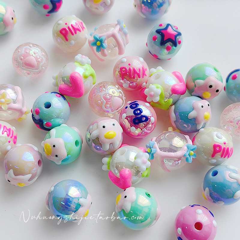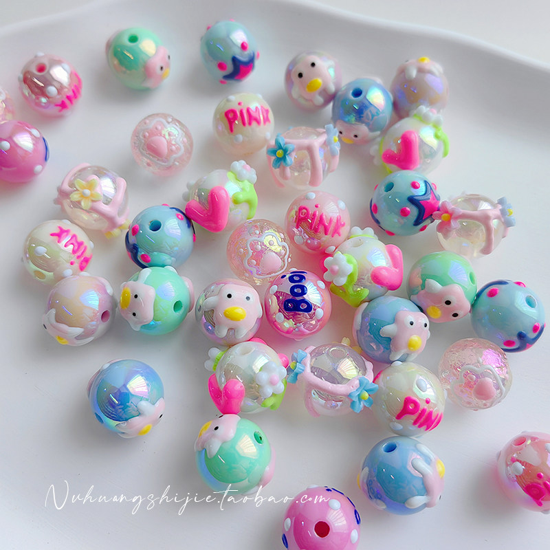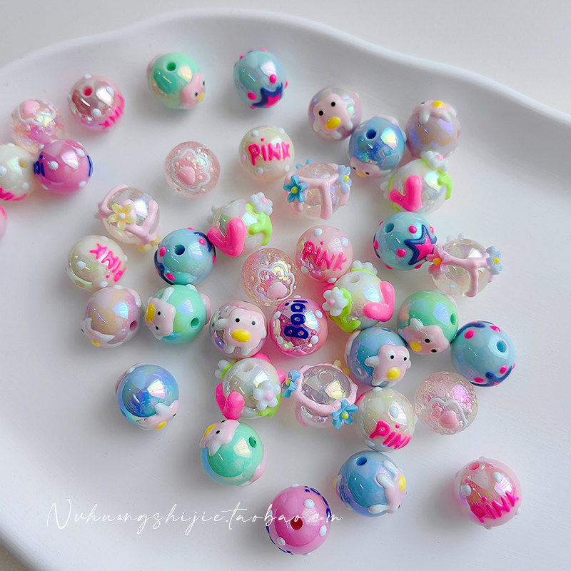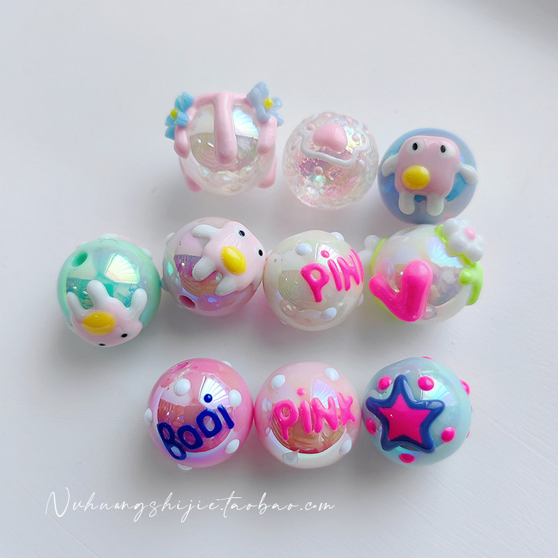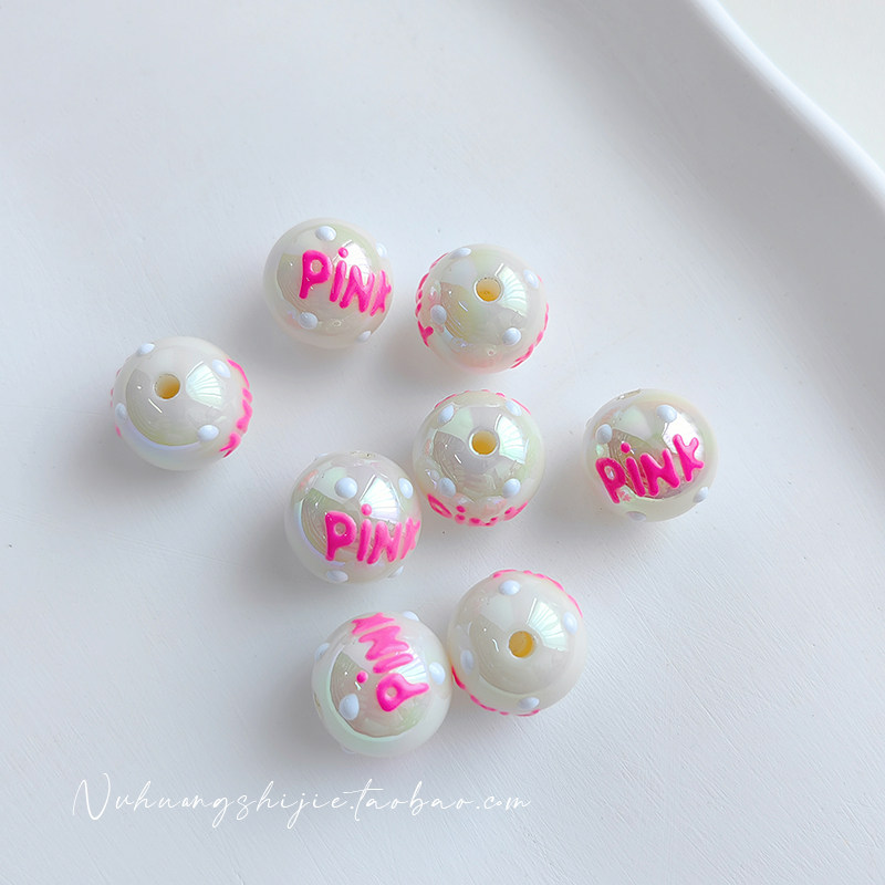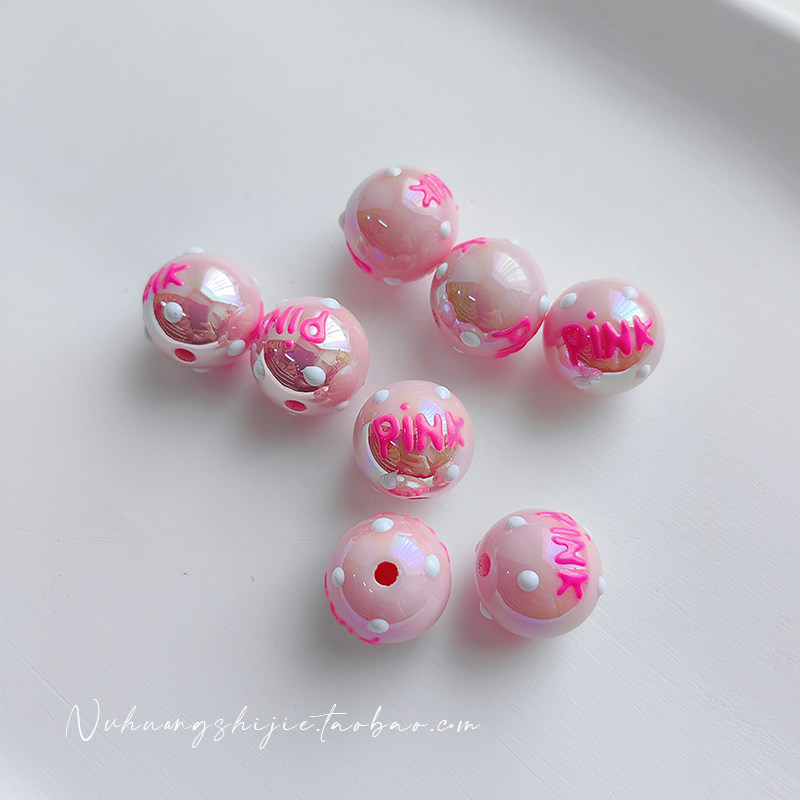 Розовые акриловые бусины ручной работы, браслет, мобильный телефон для ключей, 16мм, широкая цветовая палитра, DIY