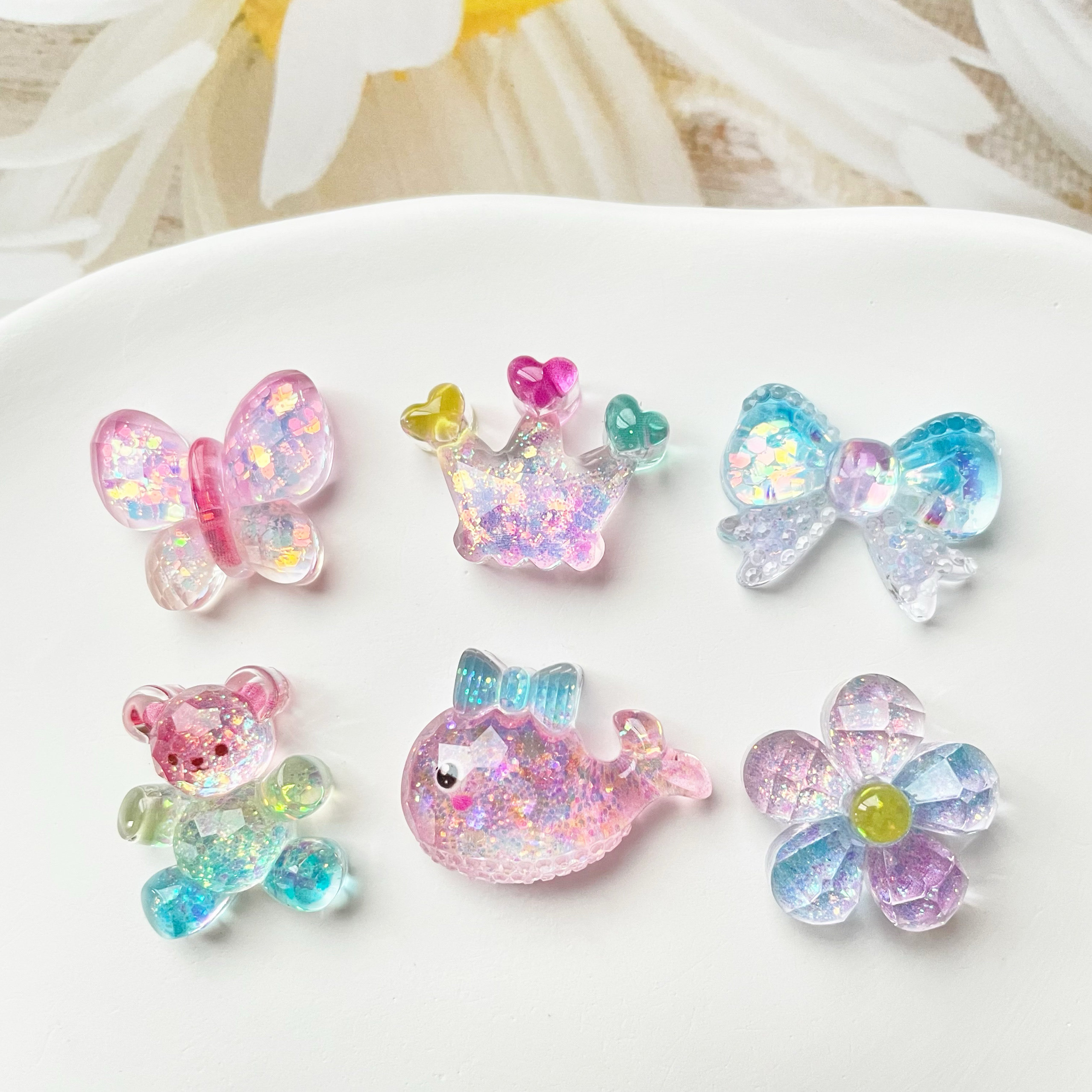 Полупрозрачные блестки для ногтей с бантиком, мультяшные аксессуары, маленький аксессуар, заколка для волос ручной работы, в цветочек, DIY