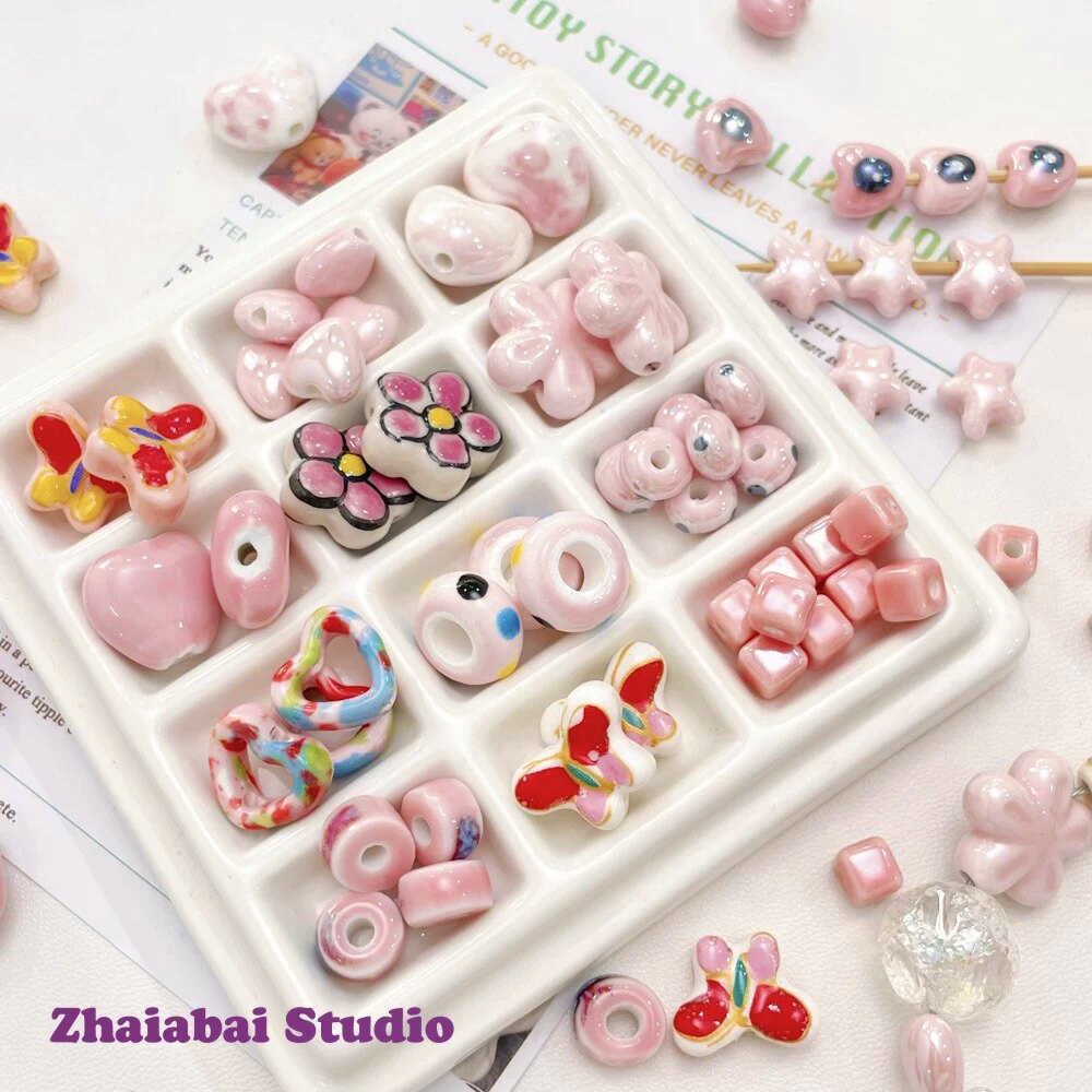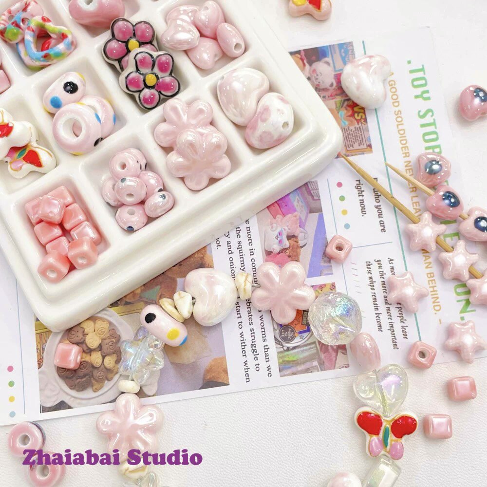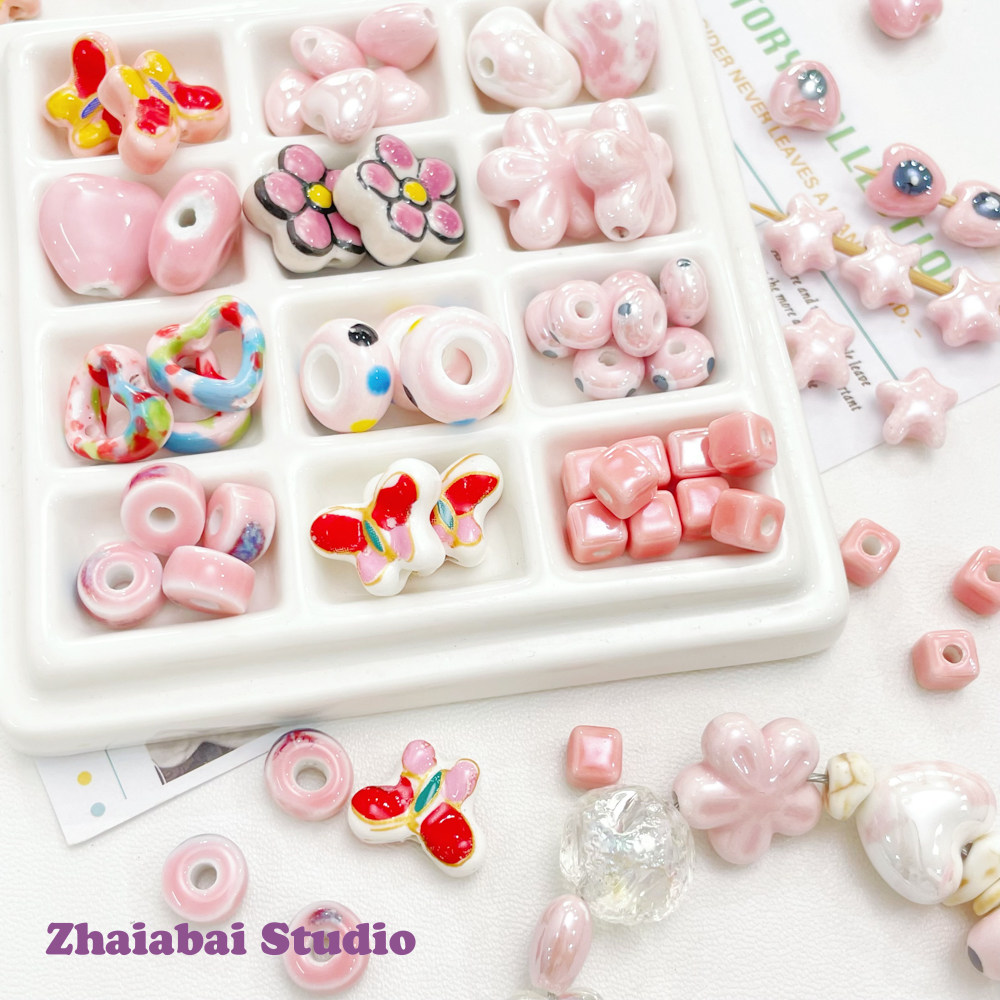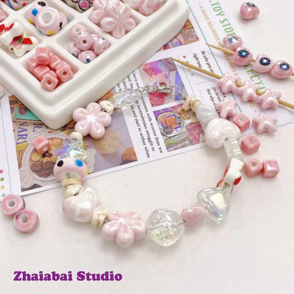 Розовые керамические бусины, браслет из бисера ручной работы, ожерелье, аксессуар, аксессуары, DIY