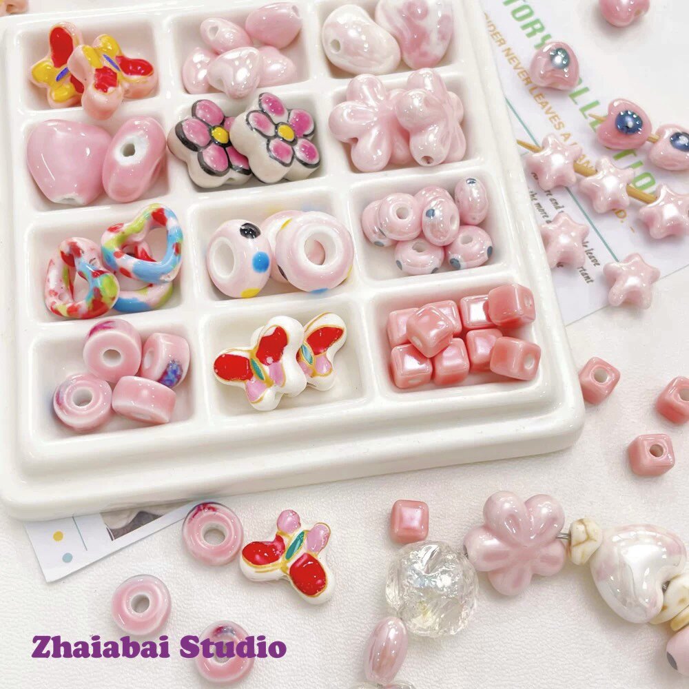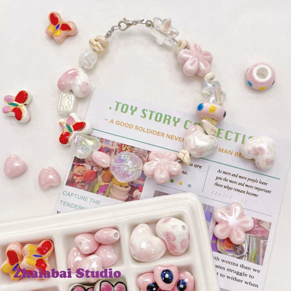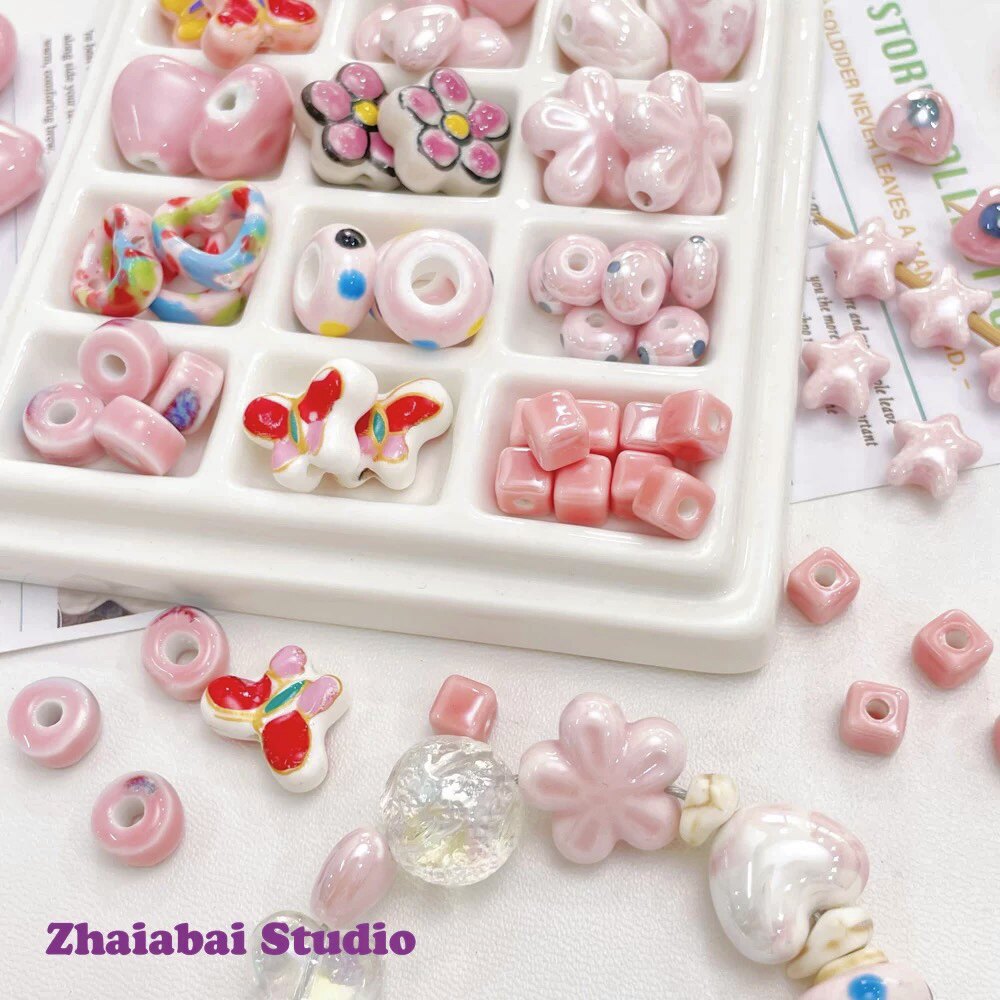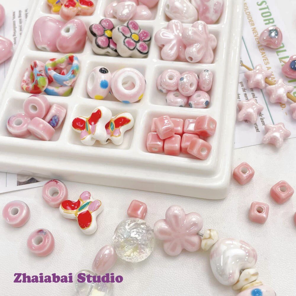 Розовые керамические бусины, браслет из бисера ручной работы, ожерелье, аксессуар, аксессуары, DIY