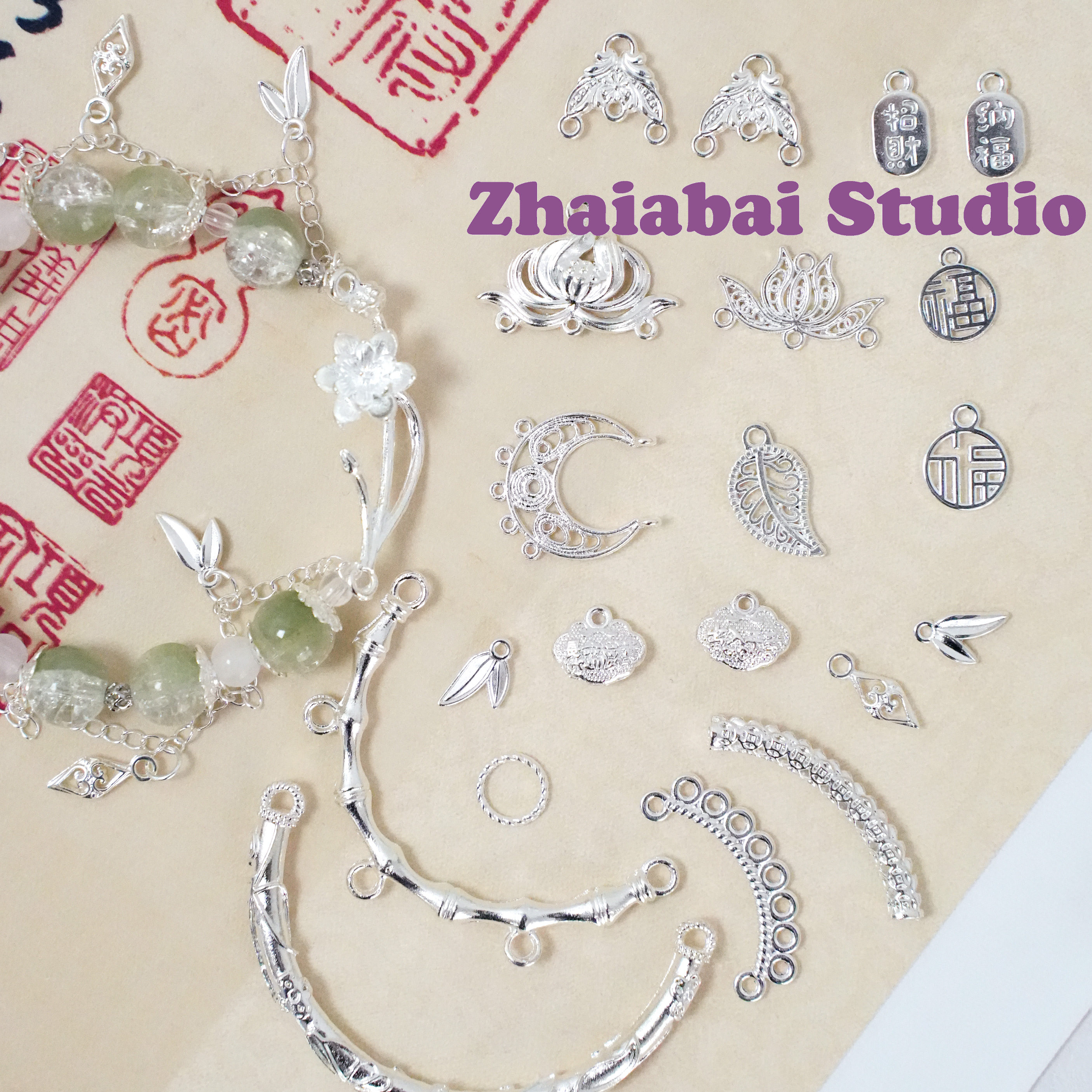 Металлическая подвеска, бусины, браслет, бамбуковая изогнутая трубка, китайский стиль, DIY