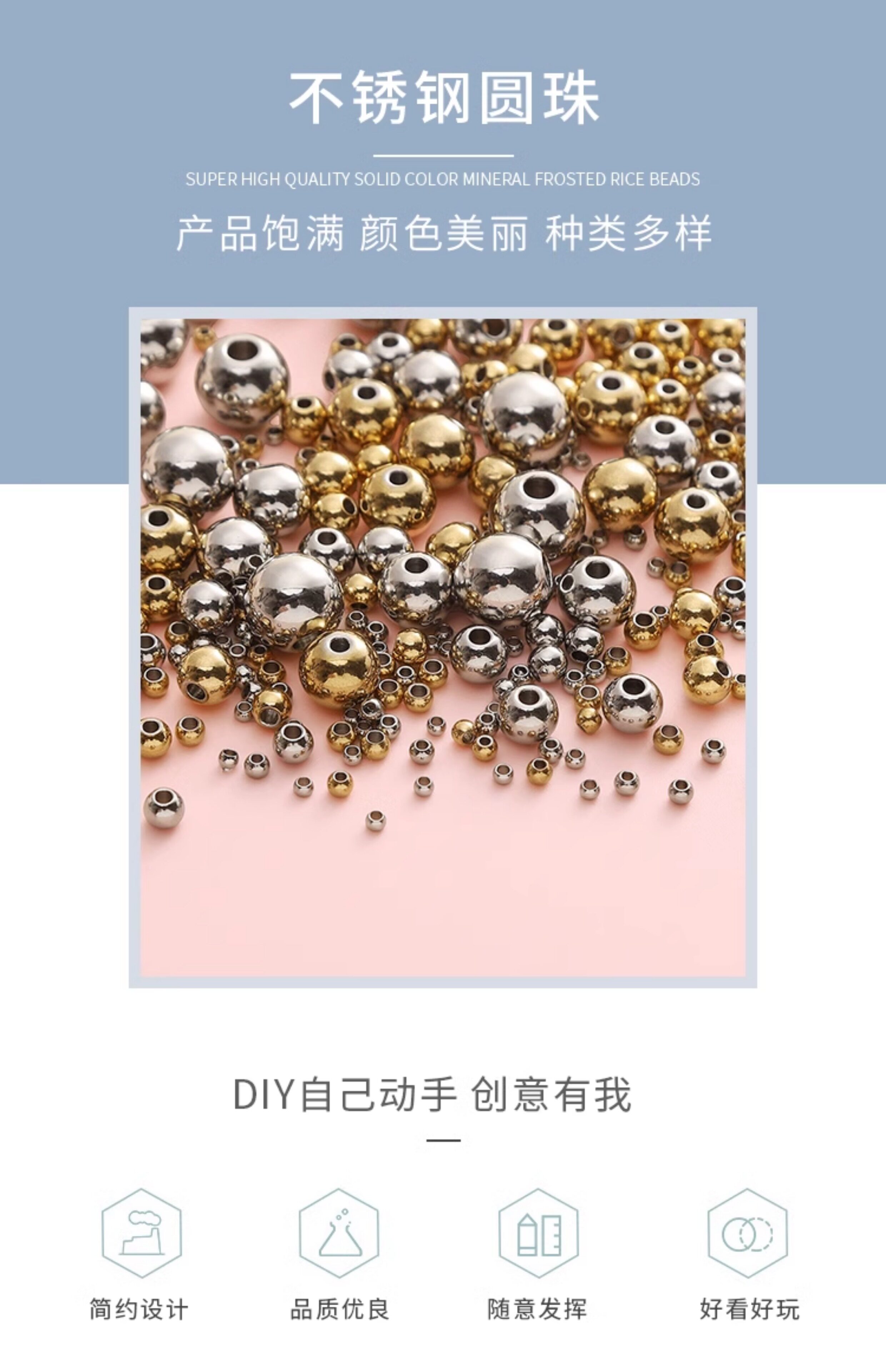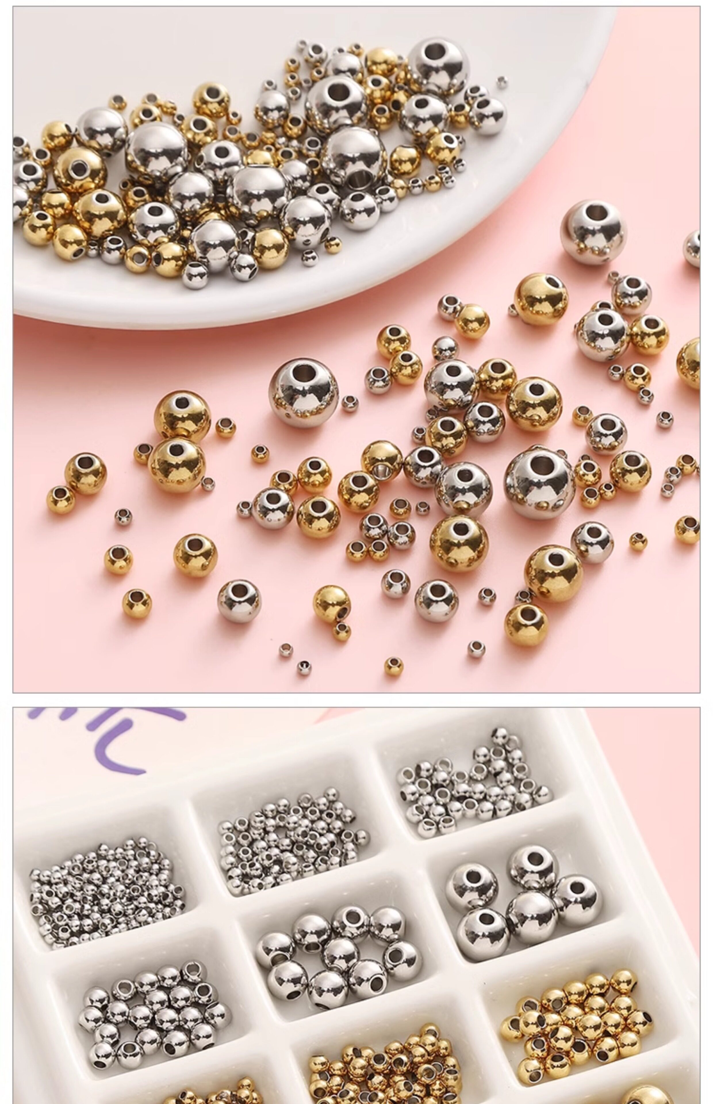 Бусины из нержавеющей стали, украшение-шарик, браслет из бисера, ожерелье из жемчуга, аксессуары, DIY