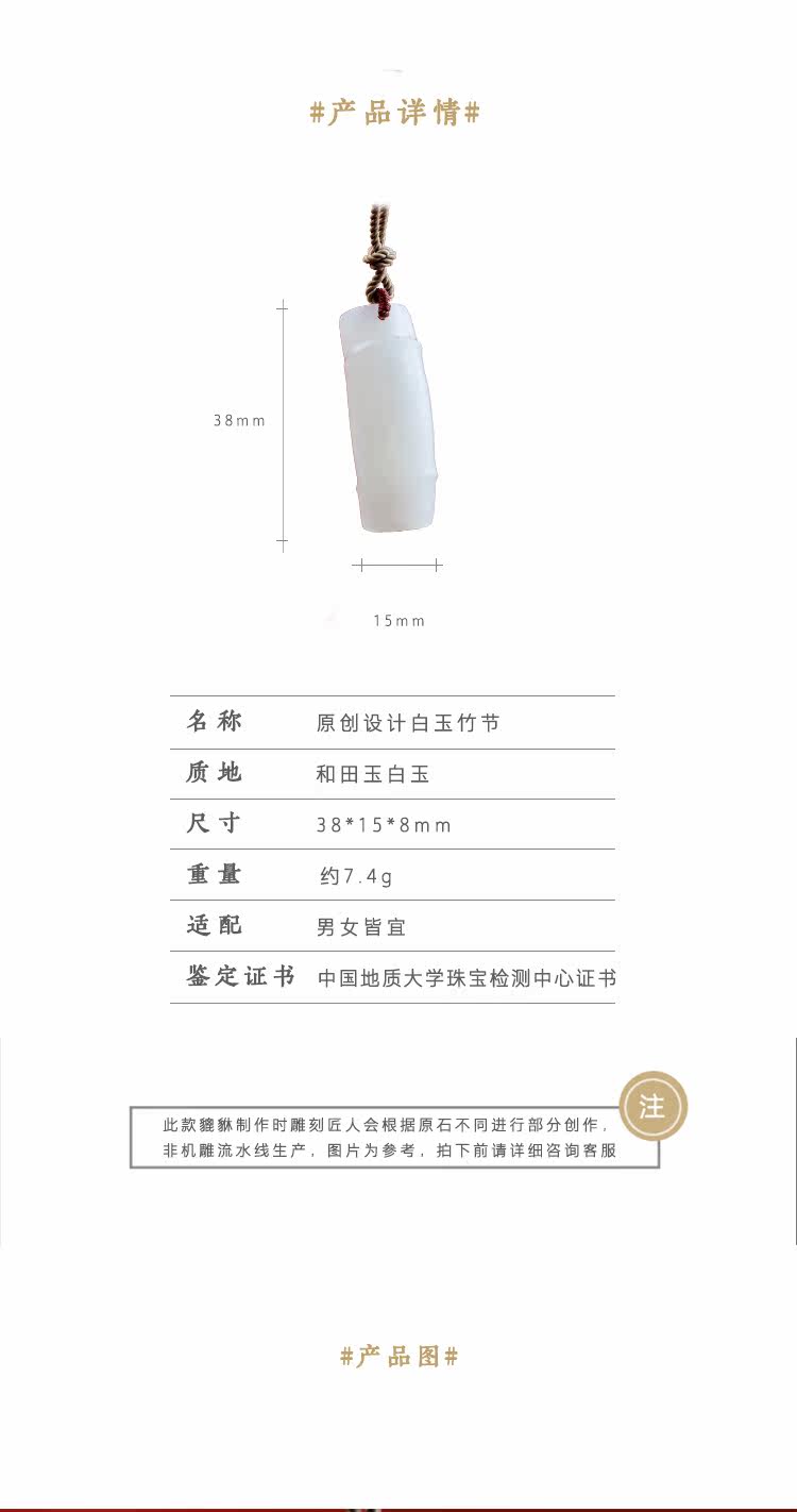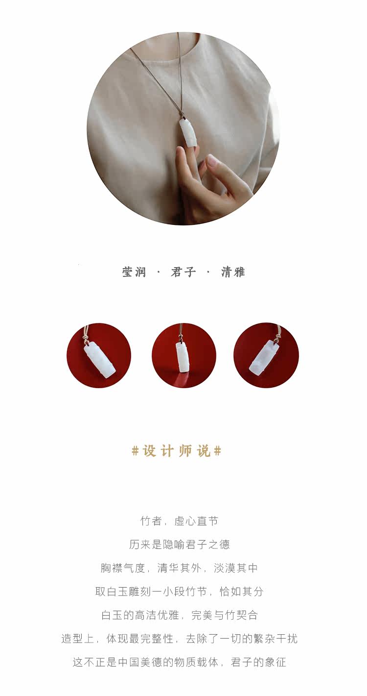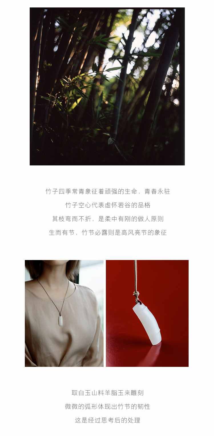 良器 Бамбуковая подвеска из белого нефрита, ожерелье подходит для мужчин и женщин, женский стиль