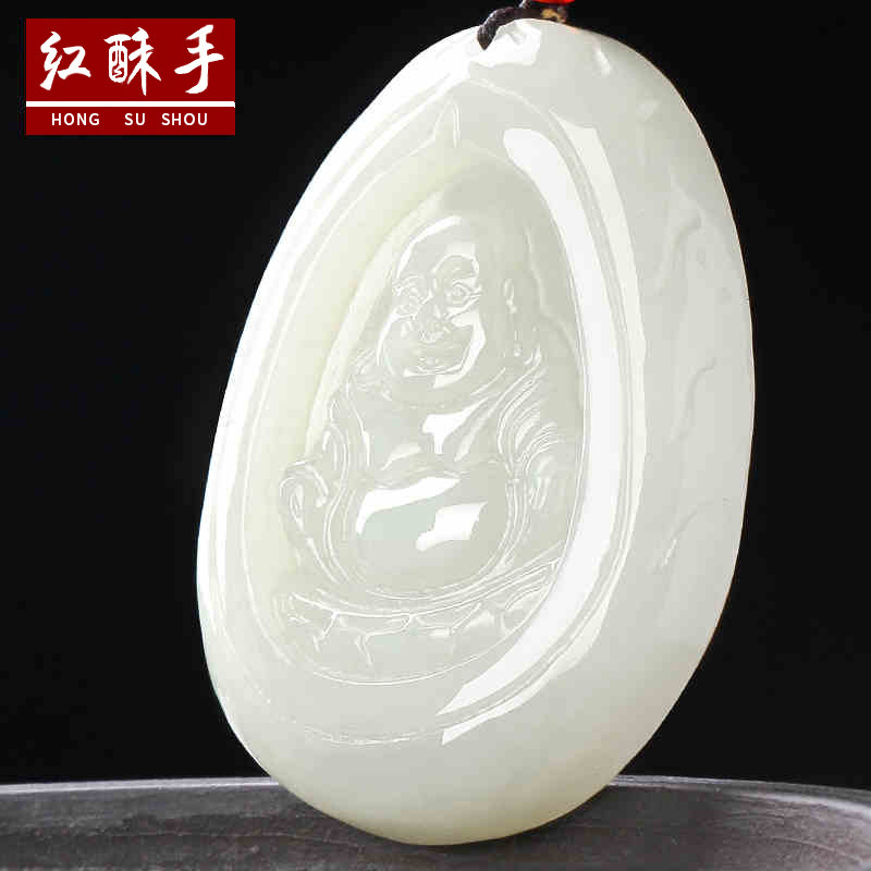 红酥手 Мужской защитный амулет из нефрита, Будда из белого нефрита, подвеска для влюбленных, женский стиль
