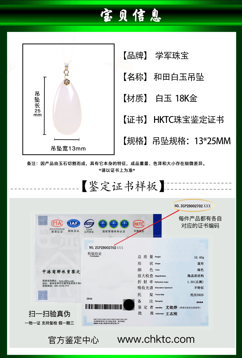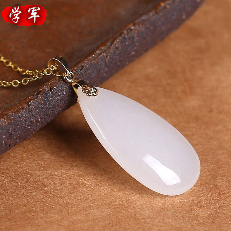 Натуральная подвеска в форме капли из белого нефрита, золото 18 карат