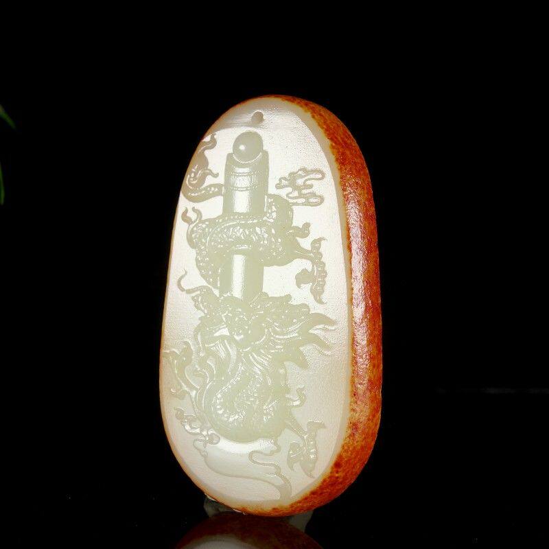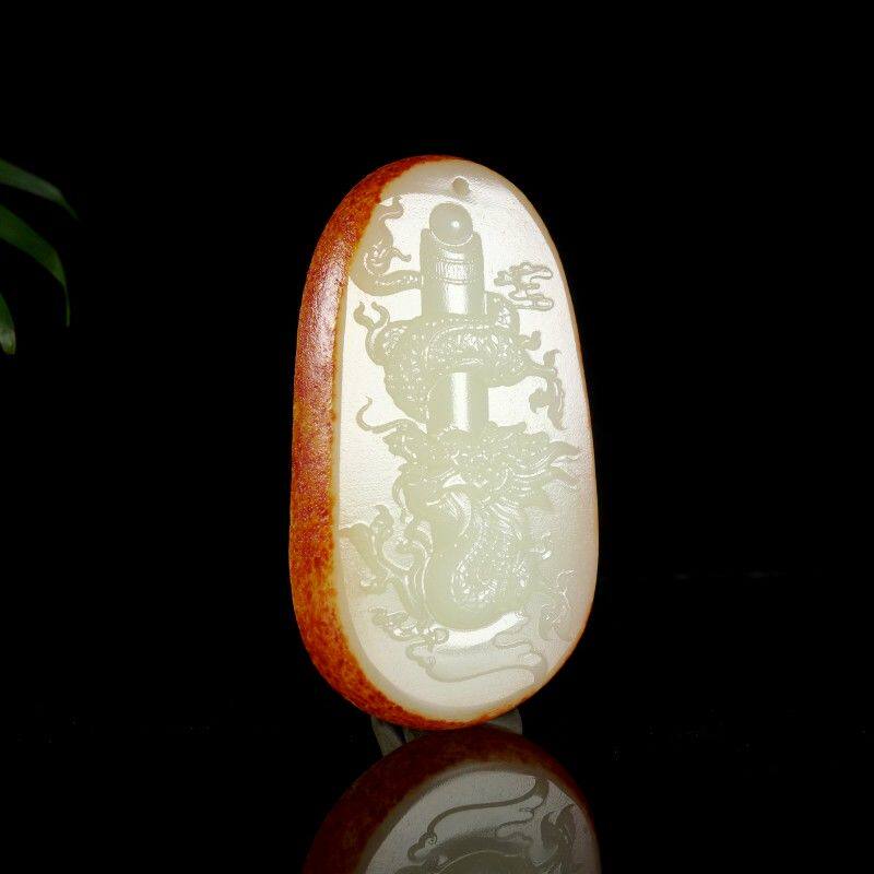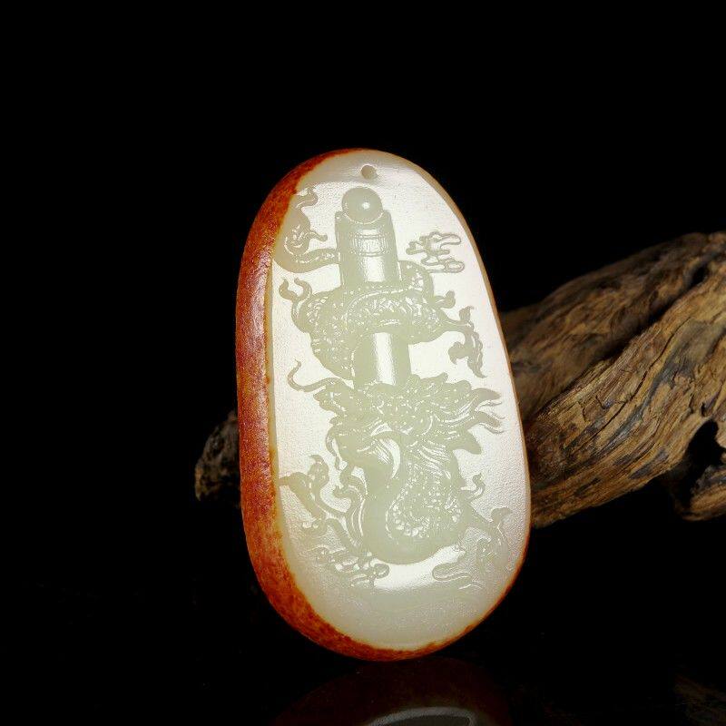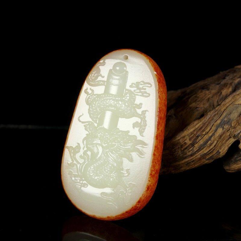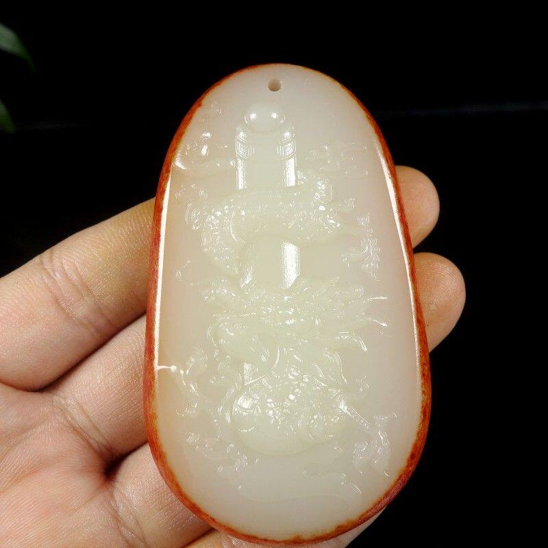 Полированный камень из белого нефрита, резная природная руда, украшение в форме дракона, ожерелье, подвеска, защитный амулет