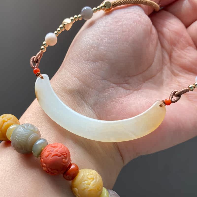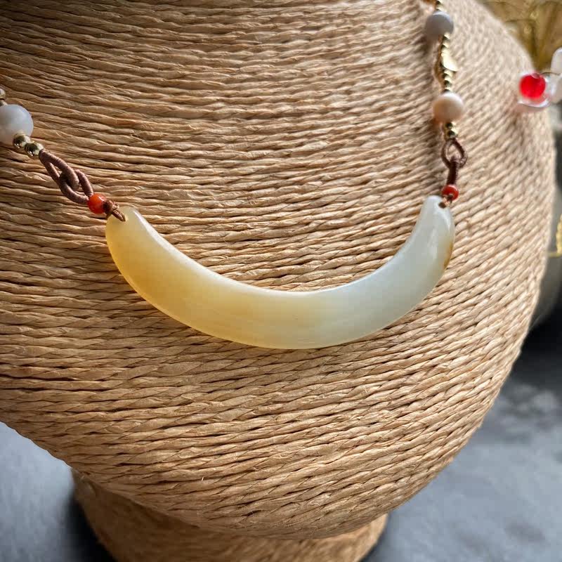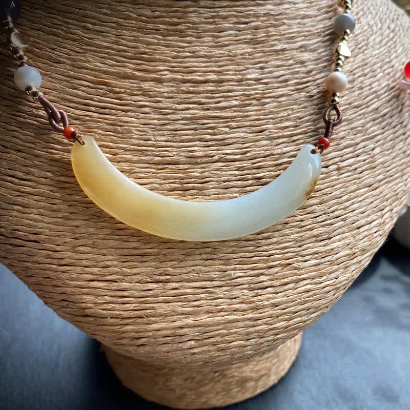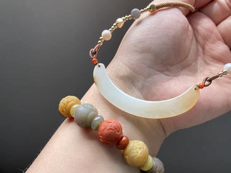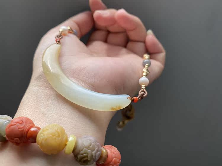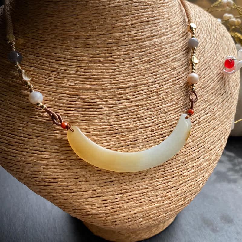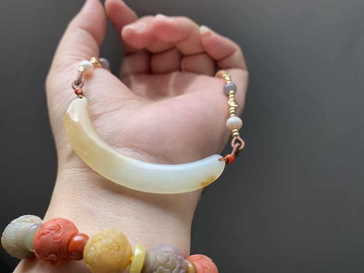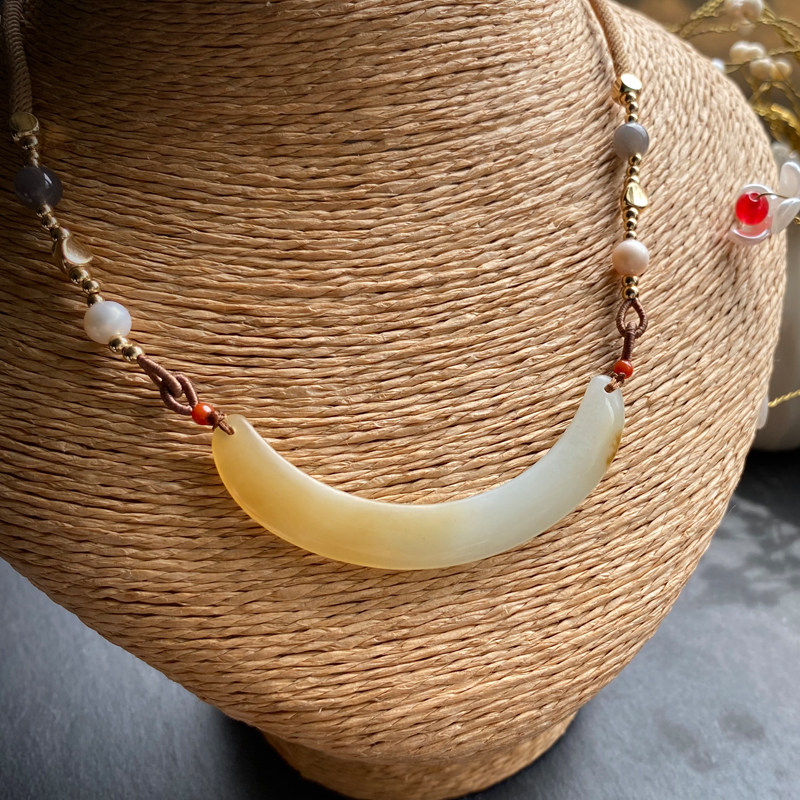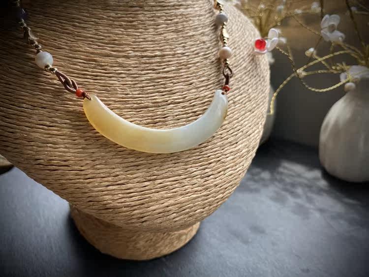 Сертификат 90010 Размер: 60-9-4 грамм весит 12,78 【Полумесяц】 Синьцзян Хетиан Джейд Лакенг сахарная белая нефритовая труба изгибай, Клэксовая костная цепь, нефритовый материал JI - это хороший. Это небольшой материал для моих высоких товаров. Желтый сахар влажный и маслянистый, а белое мясо элегантно и чисто. С дизайнерской веревкой, украшением натурального жемчуга, южного красного, дымовых пурпурных нефритовых бус, 14 тыс. Пакет золота и т. Д.