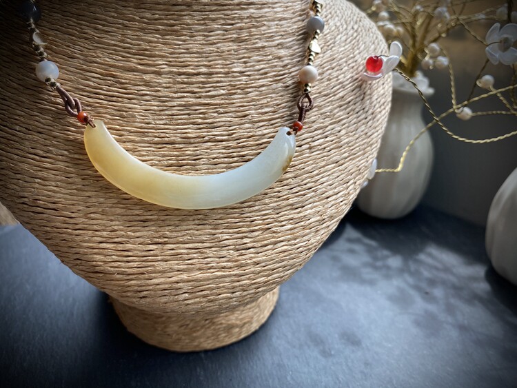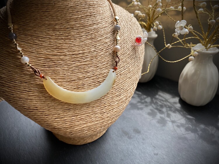 Jayne Chou Изогнутая трубка из белого нефрита, цепочка до ключиц