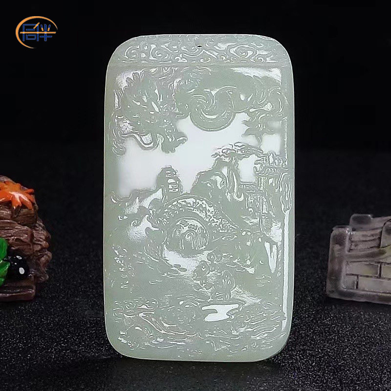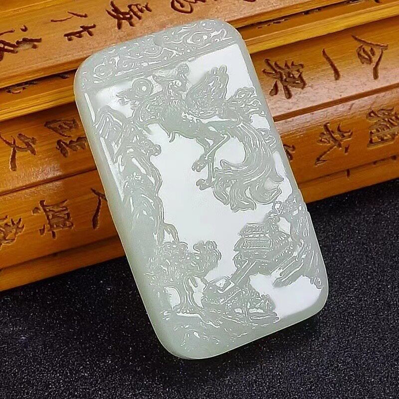Sansui, натуральное украшение в форме дракона из нефрита, подвеска из белого нефрита, дракон и феникс, мужской стиль