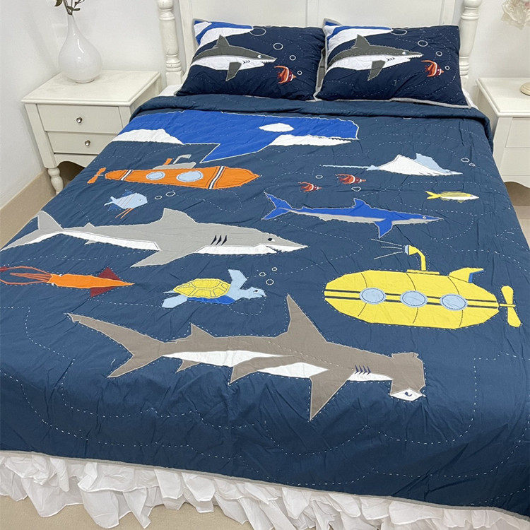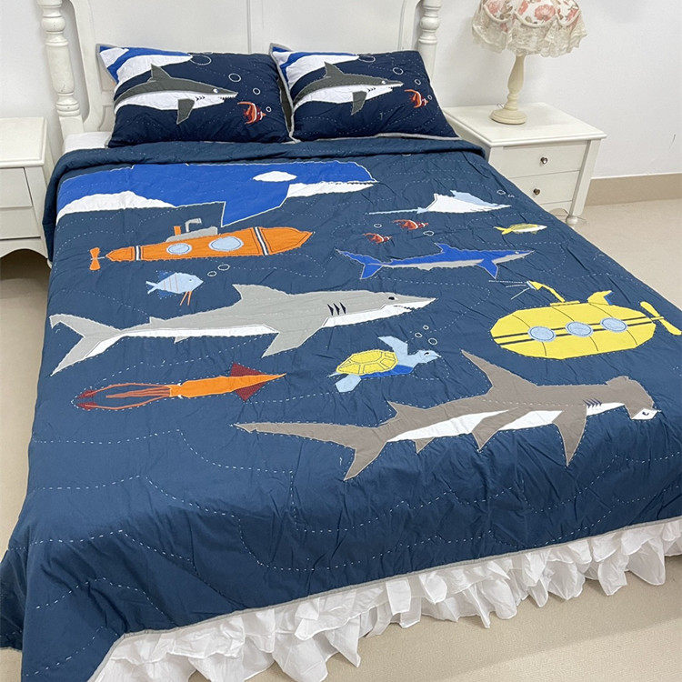 Хвост одинокий акул мальчик мультфильм стеганое одеяло чистое хлопковое швейное крышка для кровати весна и осень бесплатно