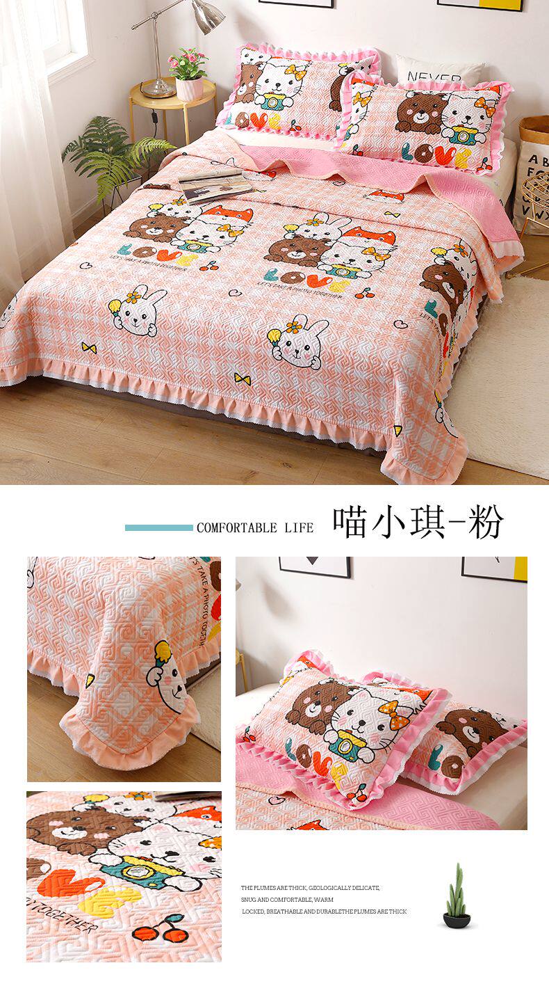 Мультяшная хлопковая стеганая простыня, покрывало, комплект, 2м, 3 предмета