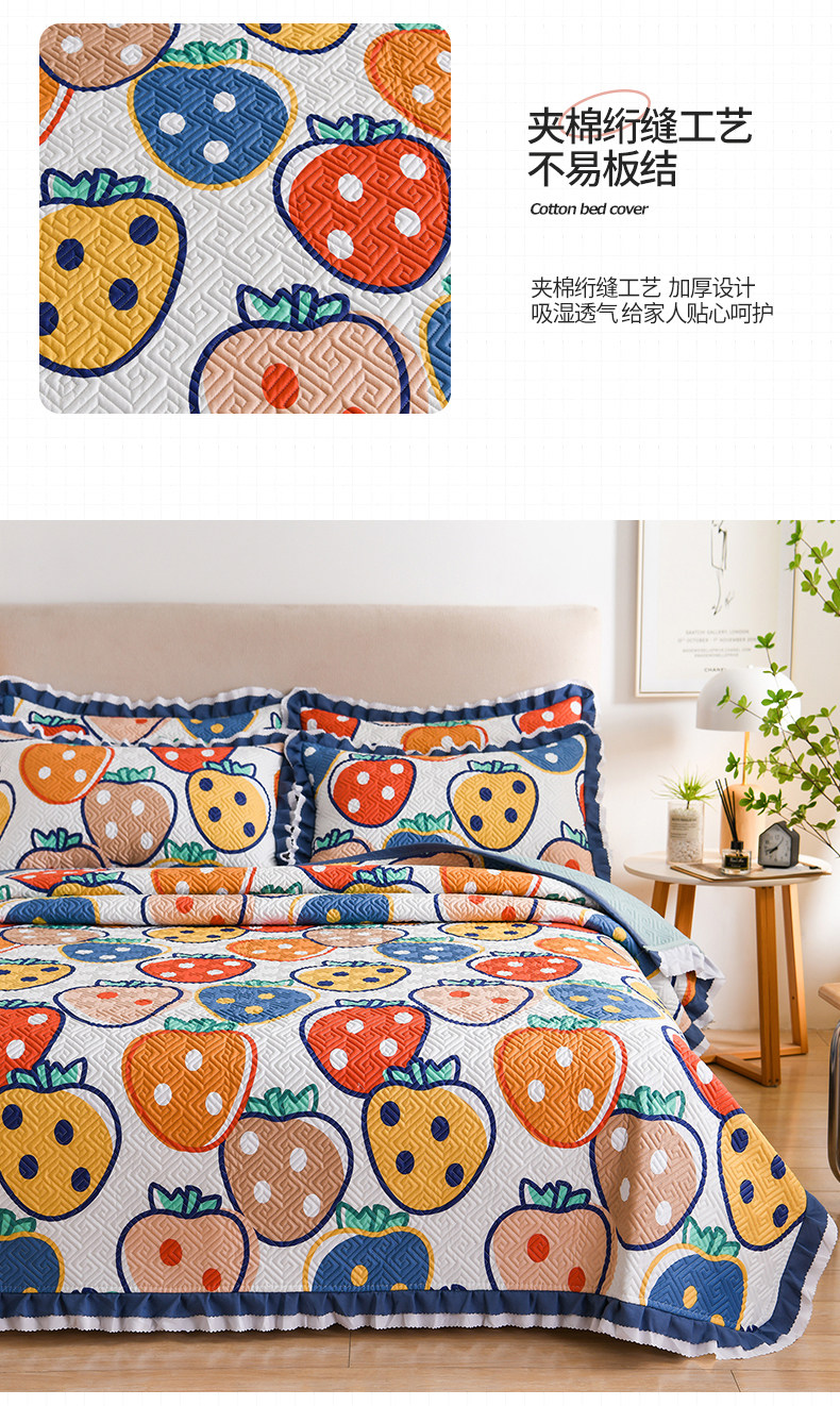 Хлопковая летняя нескользящая стеганая мультяшная простыня, детский комплект, увеличенная толщина, 3 предмета