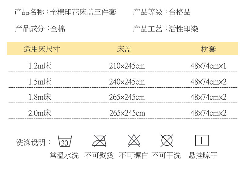 - [265*245cm床盖三件套【加同款枕套一对】]