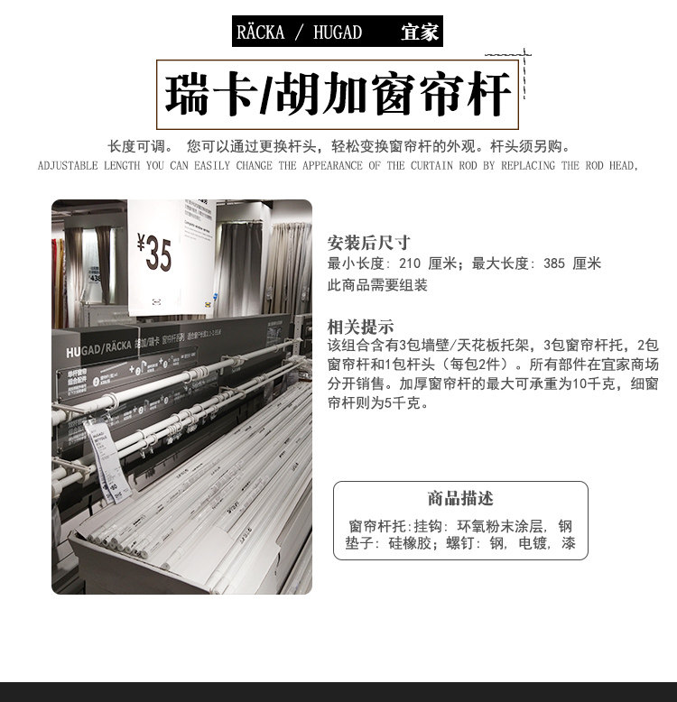Jinan Ikea Ikea Home Покупка Ruica/Huga Rode Rod Orbit Black и White One Double Pole Nanjing