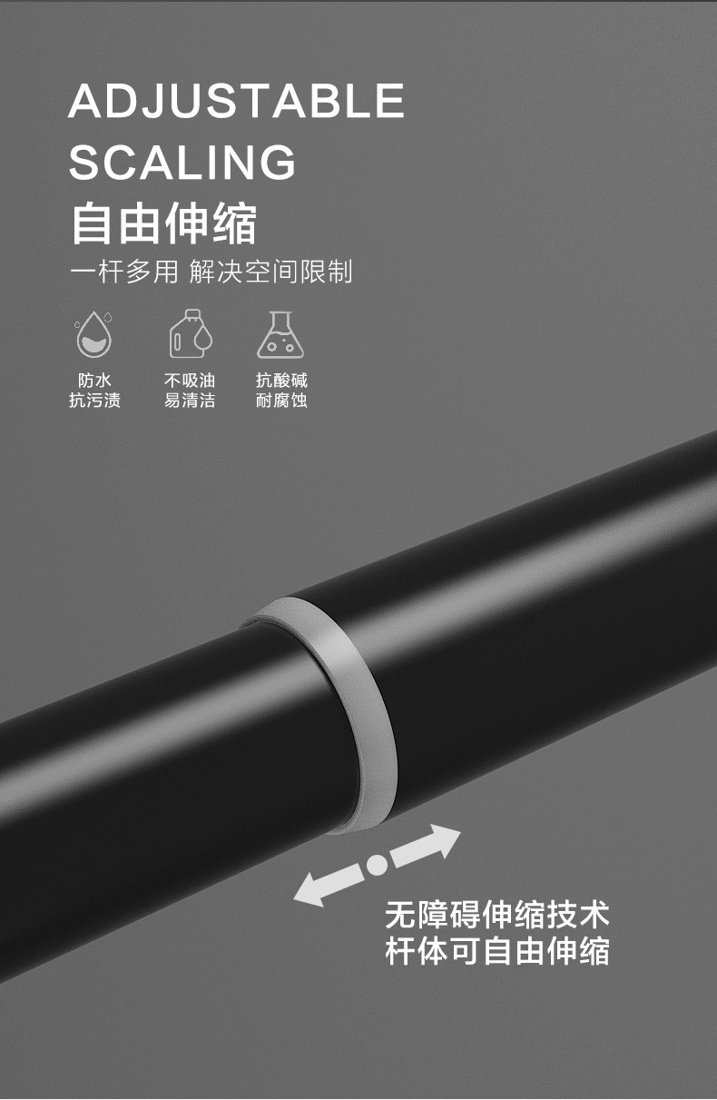 Вечное семейство ● изысканное, простое, освобожденное от удара телескопических стержней, штор, штор и толщины висящих стержней.