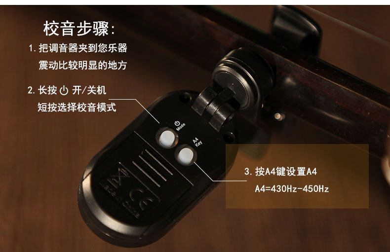 1: 1)ЭрхуТюнингПожалуйста, прижмите этоНа верхней или нижней части связанной линии, 2)ПипаПросто зажатый в оси пианино или где вы можете удержать, 3)Гукин ТунингМожет быть зажат на горе Юэ.Этот туннер передается импортированным движением звуковыми волнами.Не используйте микрофон, не ставьте его рядом с пианино.