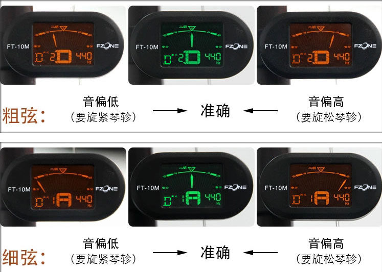 2: звук внешней строки Erhu (тонкая строка) является самым высоким.“2“ (независимо от того, является ли указатель влево или справа), это означает, что он недостаточно плотный (нижняя часть звука) и продолжает затягиваться; наоборот, если тон настроен (грубо), число отображается”1“ (будь то указатель влево или вправо), это означает, что он слишком плотный (высота звука), чтобы ослабить строку, если она плотная, она сломает строку;Если порядок строки правильныйУказатель слишком слева, указывая на то, что звук низкий, и его следует затянуть. Указатель находится справа, указывая на то, что звук высокий, и необходимо быть немного. Когда указатель находится в Центр, когда экран становится зеленым, это означает, что звук является точным.