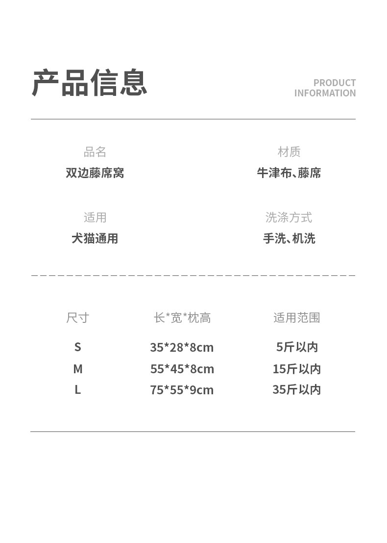 | Применимый размер: | S-Small [35*28*8] Домашние домашние животные в 5 фунтов применимы, M-Medium [55*48*8] Домашние животные в 15 фунтов применимо, L-Large [75*55*9] Домашние животные за 35 фунтов применимы |