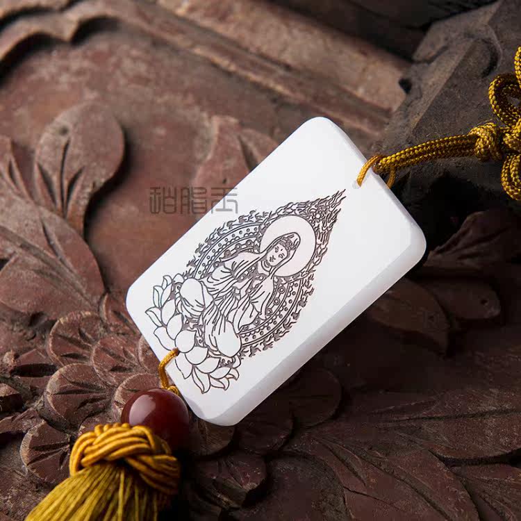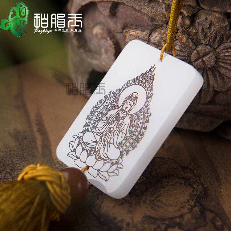 Бренд с высоким уровнем бутиков натуральный белый нефрит -каменный автомобиль висят буддийский бренд афганский нефритовый кулон нефрита.