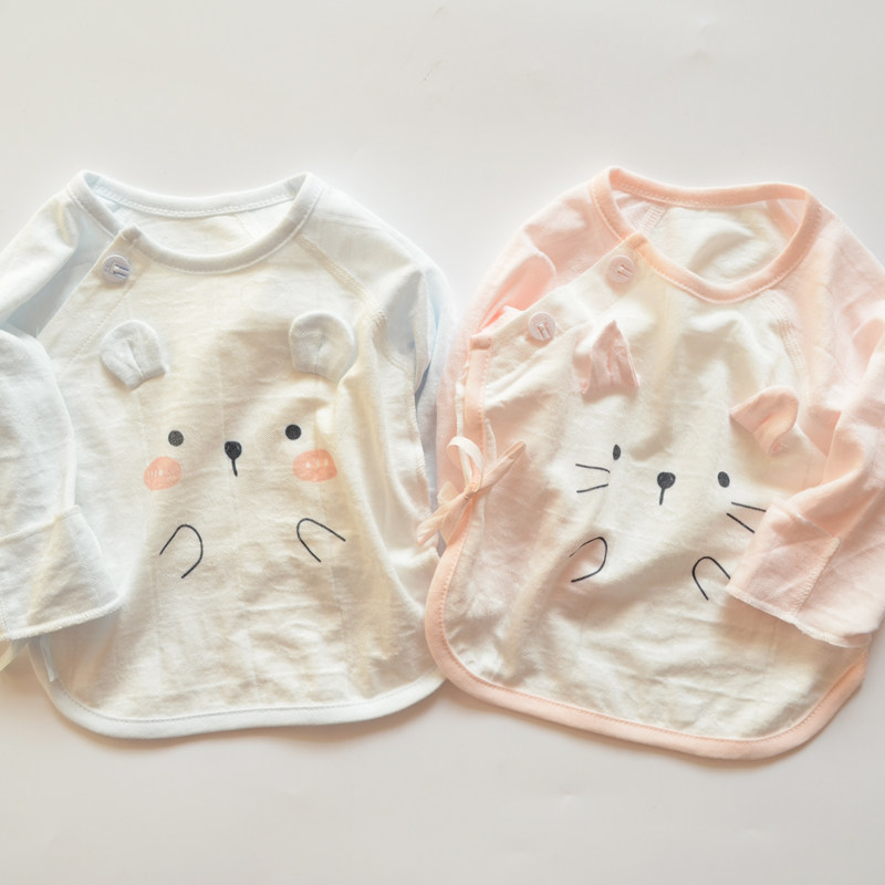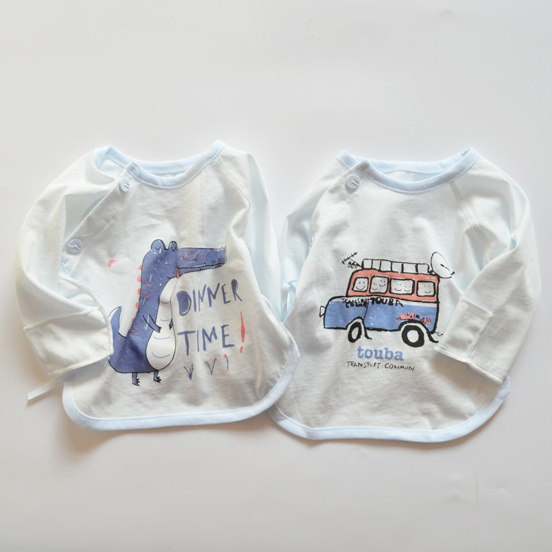 Одежда для новорожденных, одежда с полуспинкой из чистого хлопка для новорожденных, одежда для новорожденных без костей, летние и осенние топы, тонкие топы