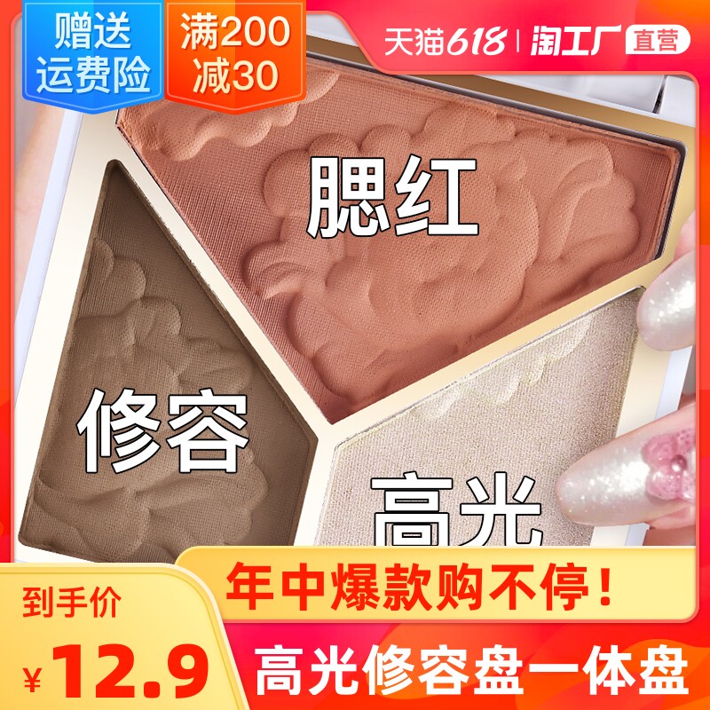 Хайлайтер для лица, осветляющие матовые тени для контуринга, румяна, комплект, «три в одном»