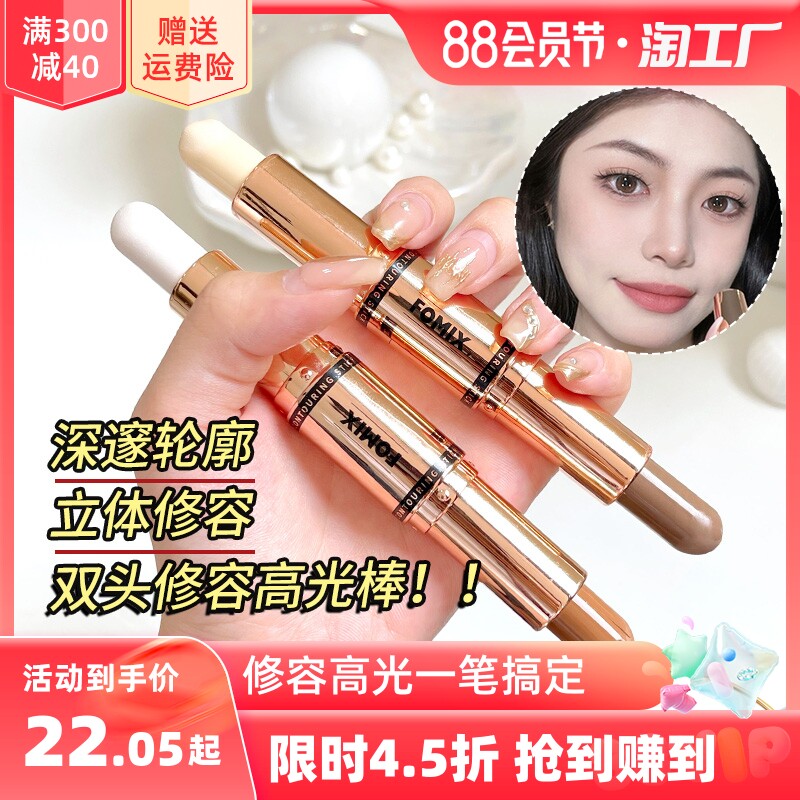 Двусторонний хайлайтер, стик для контуринга, тени, осветляющие румяна для лица, коррекция силуэта